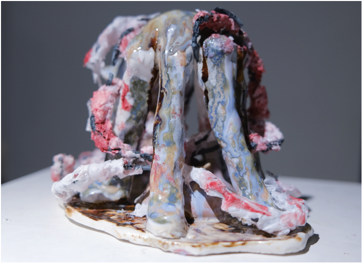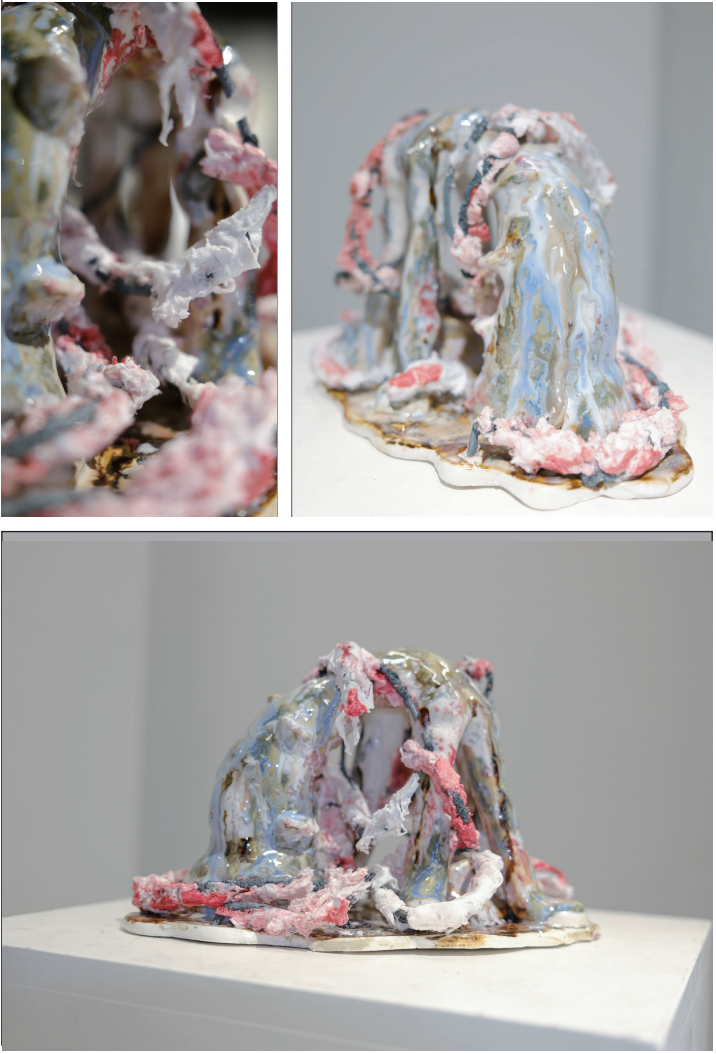 This experimental ceramic sculpture attempts to visualize a chaotic mental status under bipolar disorder. Using iron wires, speicial paper pulp, ceramic clay and glaze as media to present unspeakable emotional flow through the randomness of fifiring result.