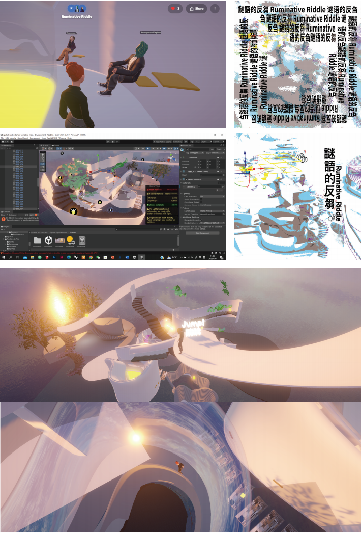 This project concentrates on the psychological development of personality — the process of individuation, in a virtual space. The four functional types in Carl Jung's 8 Personality Types are sensation, intuition, thinking, and emotion. Stepping out of MBTI's dualism, experiencers will further search for their inner self by exploring in virtual space. During rumination, the cud (partially digested feed) is regurgitated, re-chewed, and re-swallowed. Chewing during rumination is slower and more consistent than during eating. It is like the process of the thoughts spinning around in the head. The