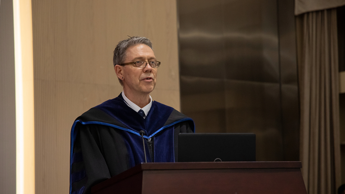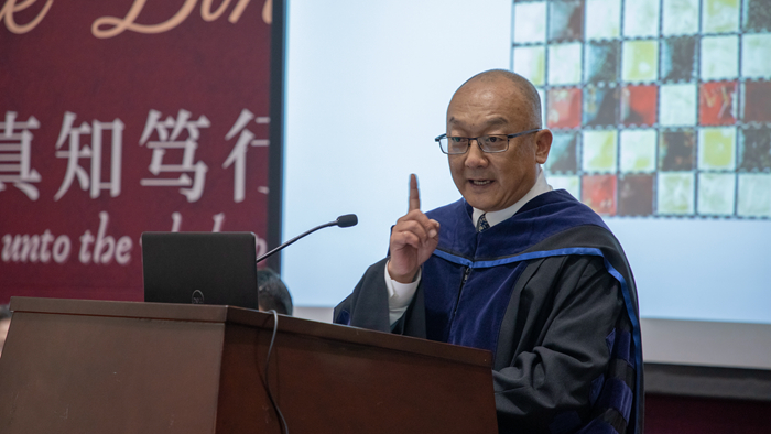 Holger Briel教授在欢迎致辞中提到,高桌晚宴是UIC的一项传统活动,它为同学们拓宽国际视野,打开了解西方文化的窗口。同学们在享用美食的同时,也可以从高桌晚宴嘉宾的演讲中获得更多学术上的启发与思考。