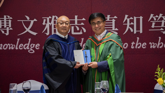 出席本次晚宴的高桌嘉宾还有:珠海市文体旅游局副局长邬向明先生,北师港浸大校长汤涛教授,副校长(学术)、理工科技学部院长黄华雄教授,协理副校长(学生发展)左龙佩兰教授,协理副校长(国际发展)、人文与社会科学学部院长贝力行教授,文化与创意学部院长Holger Briel教授,工商管理学部院长刘文斌教授。