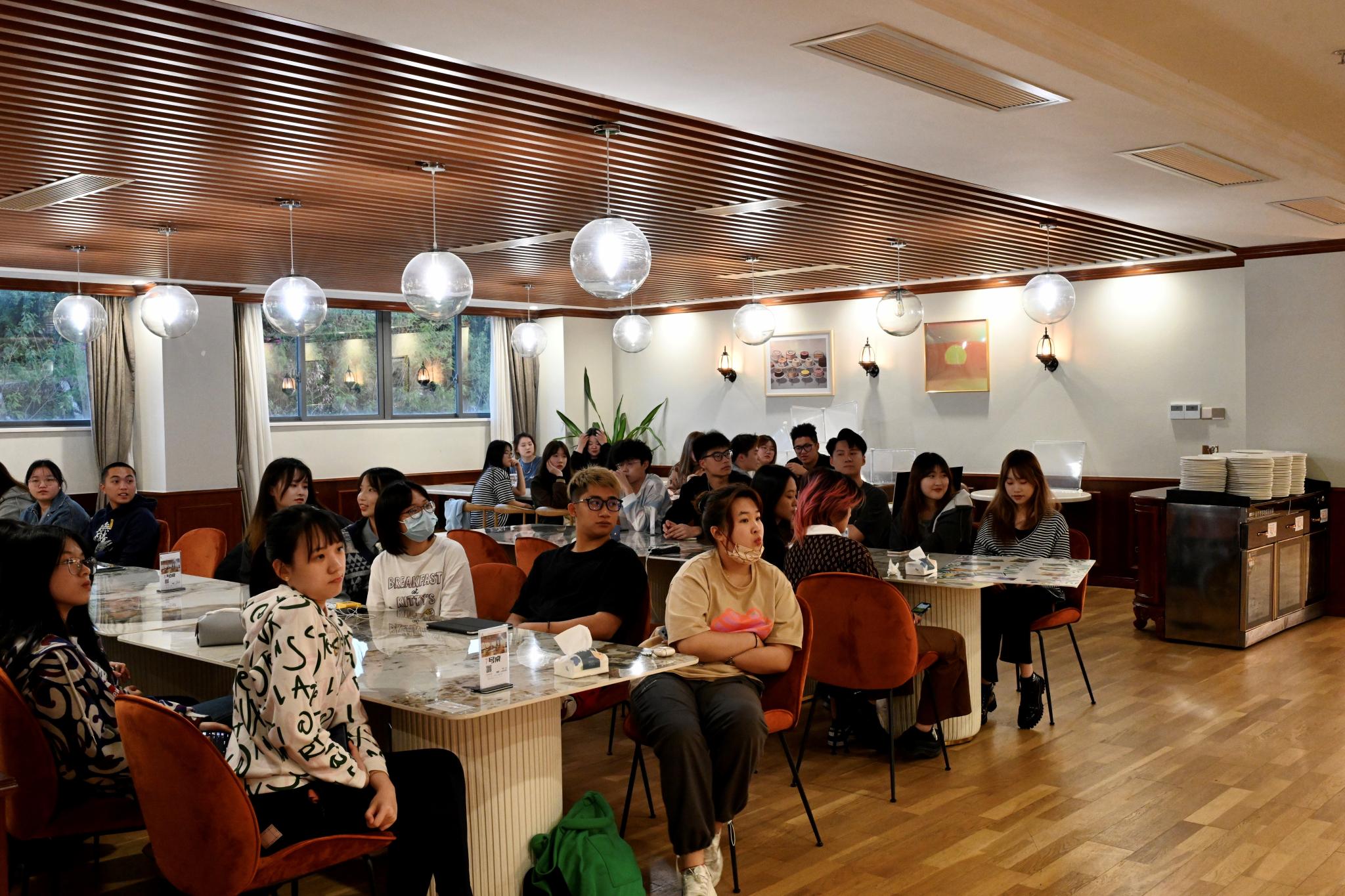 展示和交流环节后,晚宴正式开始,同学们与本专业老师们共进晚餐,一同交流,并进行了听歌识曲等破冰游戏,大家在欢声笑语中拉近了彼此间的距离。最后,老师与同学们合影留念,记录下21级CCM首次破冰活动的圆满成功。