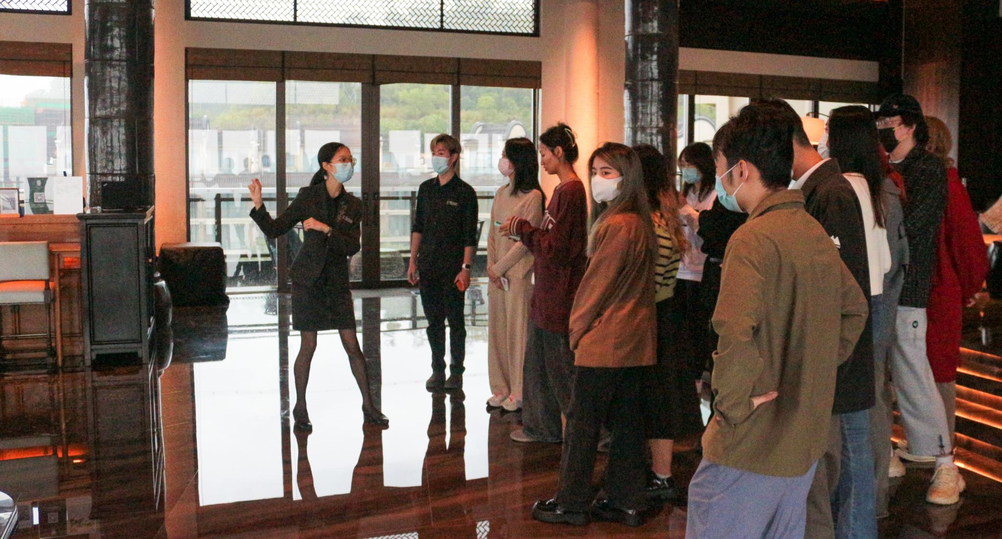 Under the guidance and explanation of the facilator, students visit front desk, rice bowl restaurant, market place restaurant, spa & creation, shadow bar etc., and had an in-depth understanding of the operation and hotel management of the "Urban Resort".