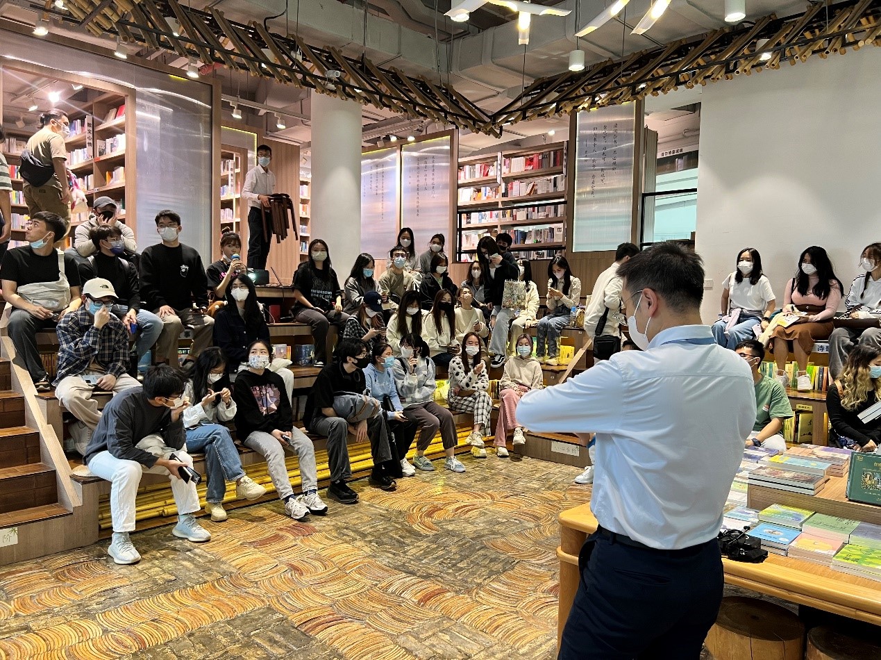 Students got together in the Xinhua Bookstore (书笙), one of the most beautiful bookstores in China, to exchange information and share our ideas with the manager and our classmates.