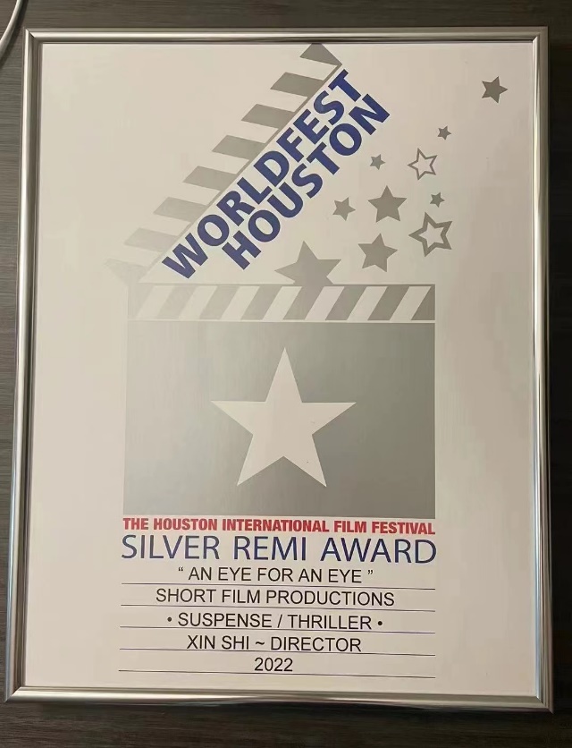 2022年第55届休斯顿国际电影节悬疑短片银奖奖状