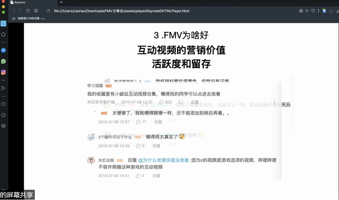 谈到FMV具有什么优势,他说:“因为信息在FMV是双向传播的--相比于弹幕。”