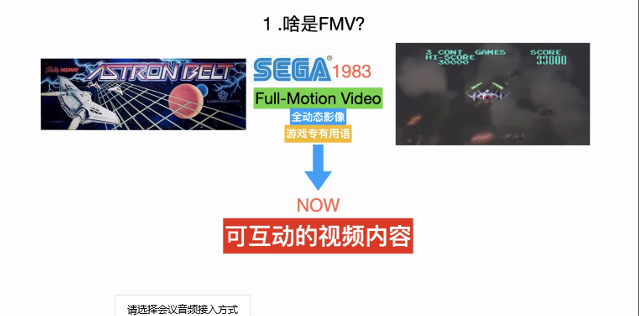曹学长现在在做全动态视频(FMV),他介绍了什么是互动影游--可互动的视频内容。