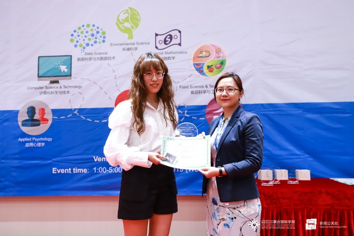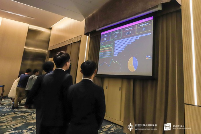 The external judges for this event were Professor of Department of Education Studies at HKBU Prof Vicky C. Tam; Director of Zhuhai Zhonghui Microelectronics Co. Ltd, Mr Wu Bin; Co-founder of 4DAGE Technology Ms Zheng Kuan; Assistant Researcher at Jinan University Dr Huang Shan; Senior Lecturer at HSBC Business School in Peking University Shenzhen Campus Ms Priscilla Lynne Young; UIC Adjunct Associate Professor and President of AAFUD Industry (Zhuhai) Co. Ltd Dr Chen Wentian; and President of Greater Bay Area Big Data AI Association Mr Steve Wong. UIC judges included Dean of Division of Culture and Creativity Prof Brian Clarke; General Education Office Prof Sookja Kim Chung; Assistant Professor of DST Dr Wong Chiu Fai; Associate Professor of DBM Dr May Wang; Assistant Professor of FM Dr Zhao Pengfei; Associate Professor of ENVS Dr Tsim Siu Tai; and Assistant Professor of DST Dr Zhang Wei.