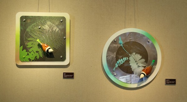 Though titled Louis Vuitton, an artwork seemed to have nothing to do with luxurious goods. It contained a wood carving bird standing on a branch that was made of acrylic glass. The bird overlooked the tree and leaves in the background which was enamel paint.