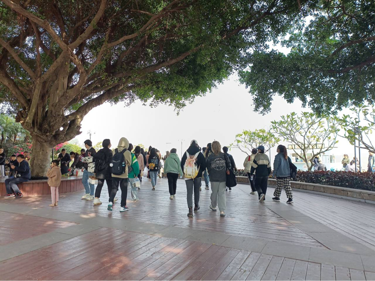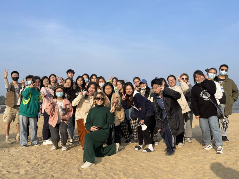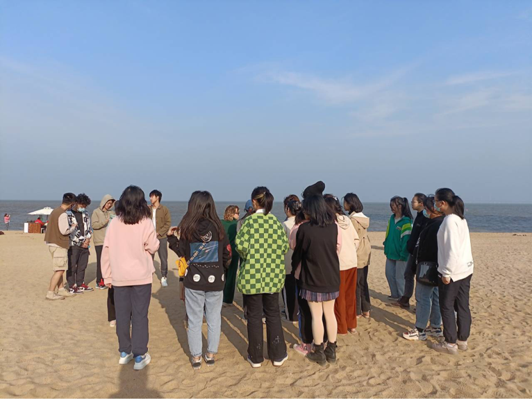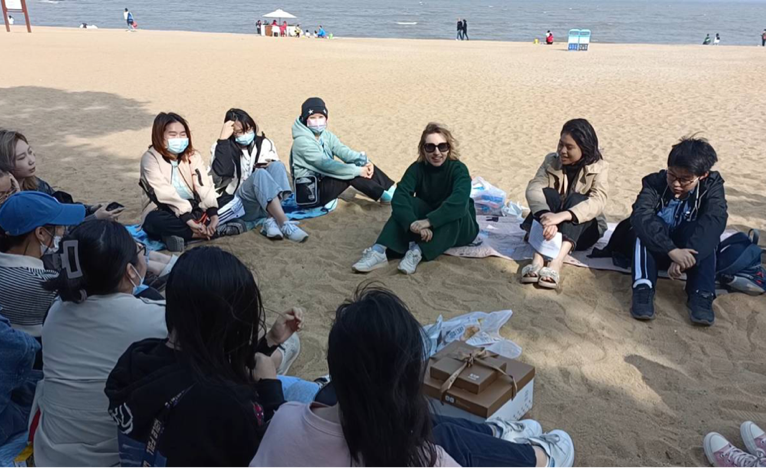 Students sat on the beach and introduced themselves. Some students gave performances and got applause from the audiences.