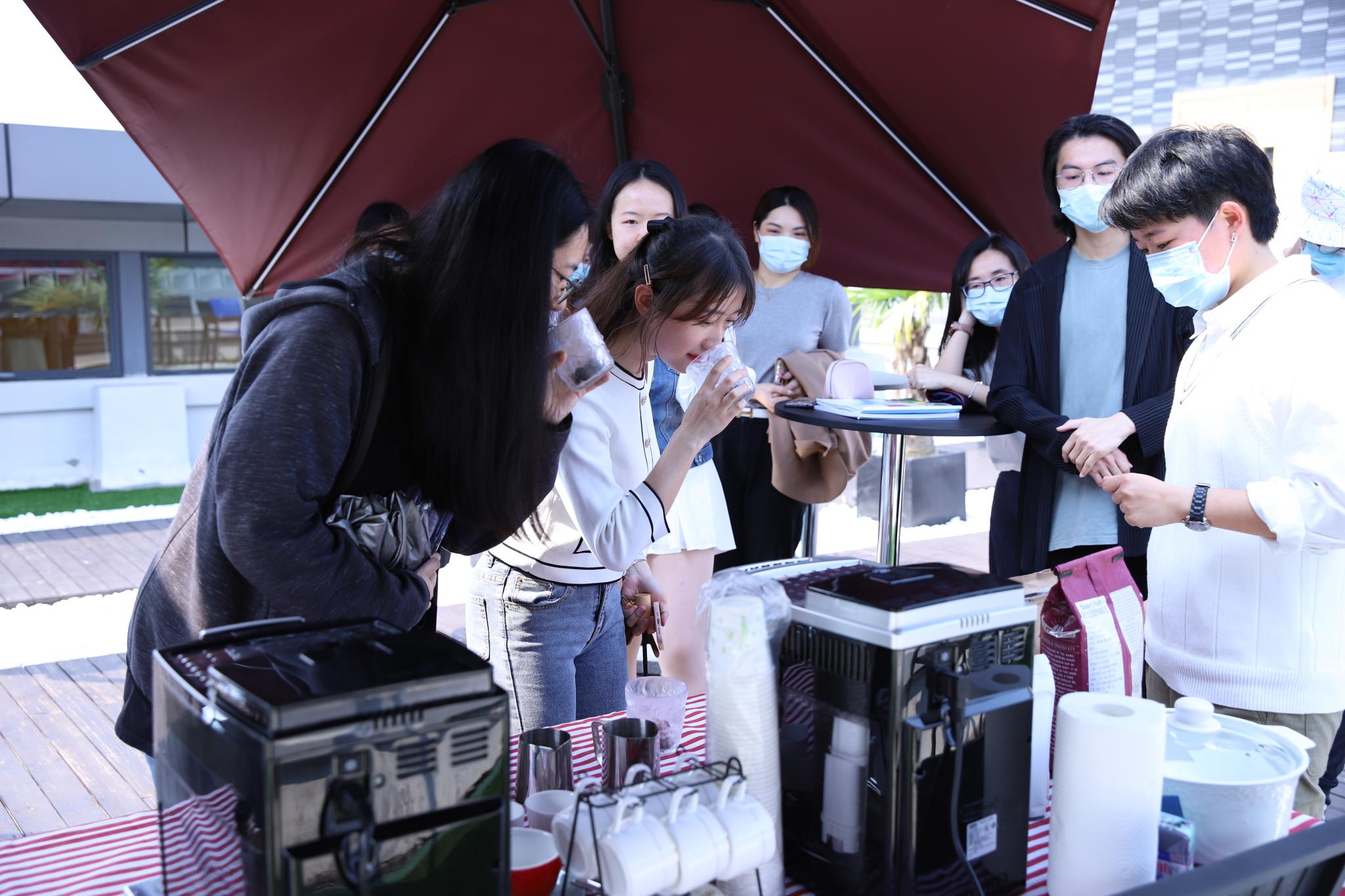 Under the guidance of Shayne, students learned the history of coffee, tried to distinguish the smell of different types of coffee beans, learned the techniques of making espresso, long black, cappuccino, and latte, and made their own cups of coffee, not to mention the mouth-watering cookies and pastries, and the good companies that all participants were enjoying.