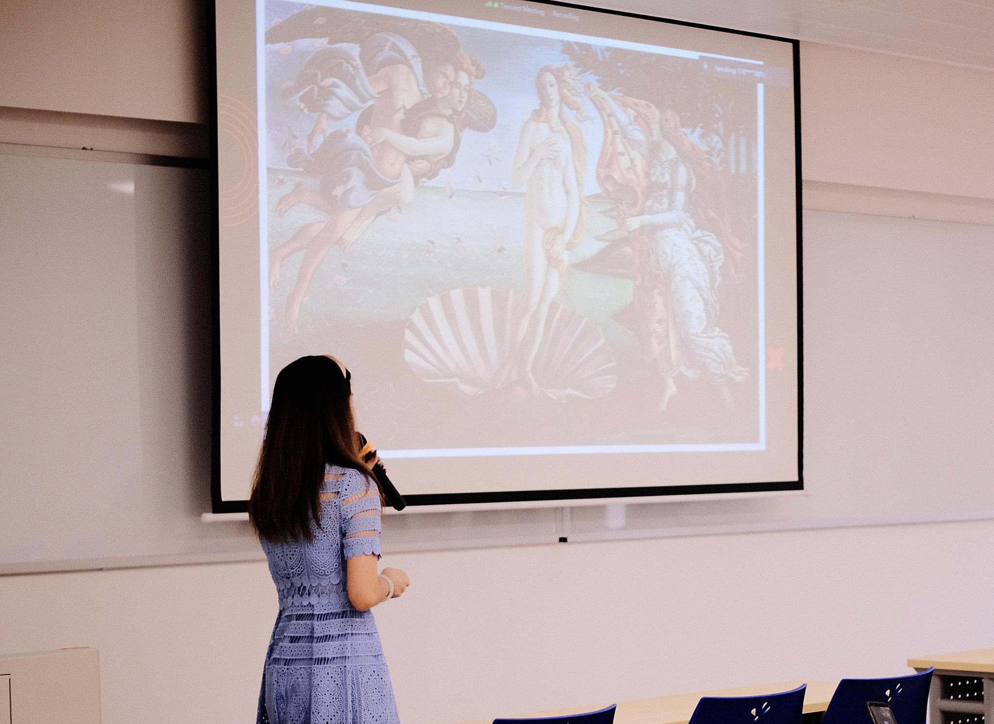A seminar about Renaissance painter Sandro Botticelli kicked off in CC-326 on April 8, 2022. The seminar was hosted by Ms. Angelica ZHANG part-time lecture of the Media Arts and Design program. The aim of this seminar is to get participants to know art history and artists in the Renaissance period, get in-depth of how to appreciate the art. And expect it to be a window for our students to be involved in art history and get creative by having a deeper understanding of a piece of artwork.