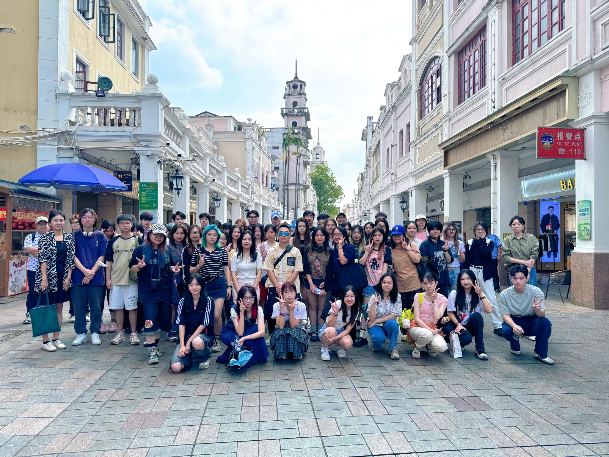 The first stop of this Zhongshan inspection tour was the famous Sunwen West Road Cultural Tourism Pedestrian Street. This street is not only well-known for its bustling commercial atmosphere, but also a cultural landmark with a long local history in Zhongshan. The Xiangshan Commercial and Cultural Museum, arcade buildings, Xishan Temple, and modern shops along the pedestrian street form a unique landscape, allowing students to immerse themselves in the fusion of ancient and modern while wandering.