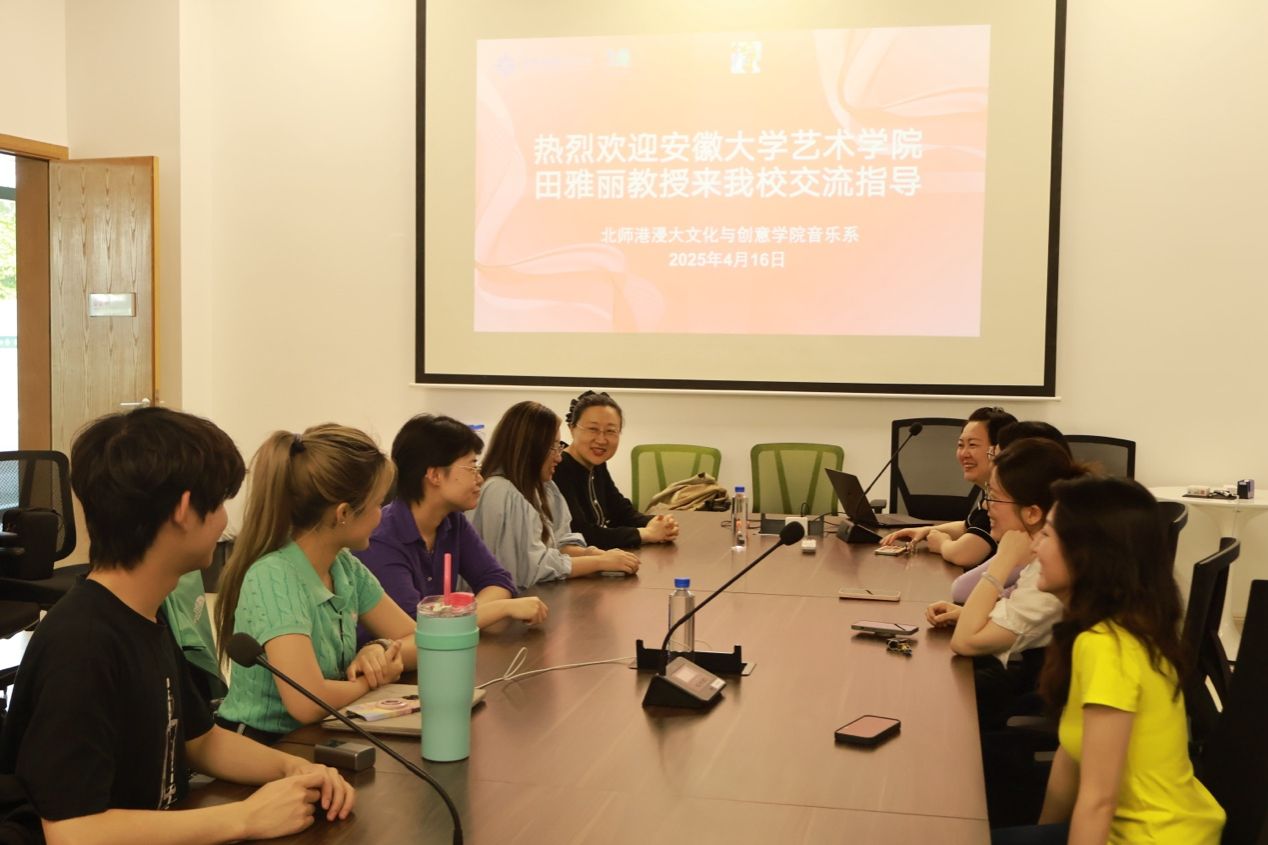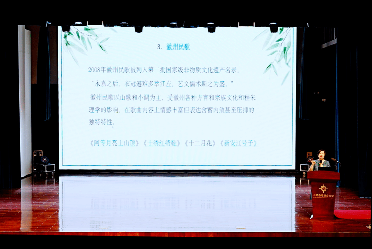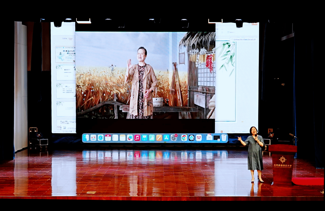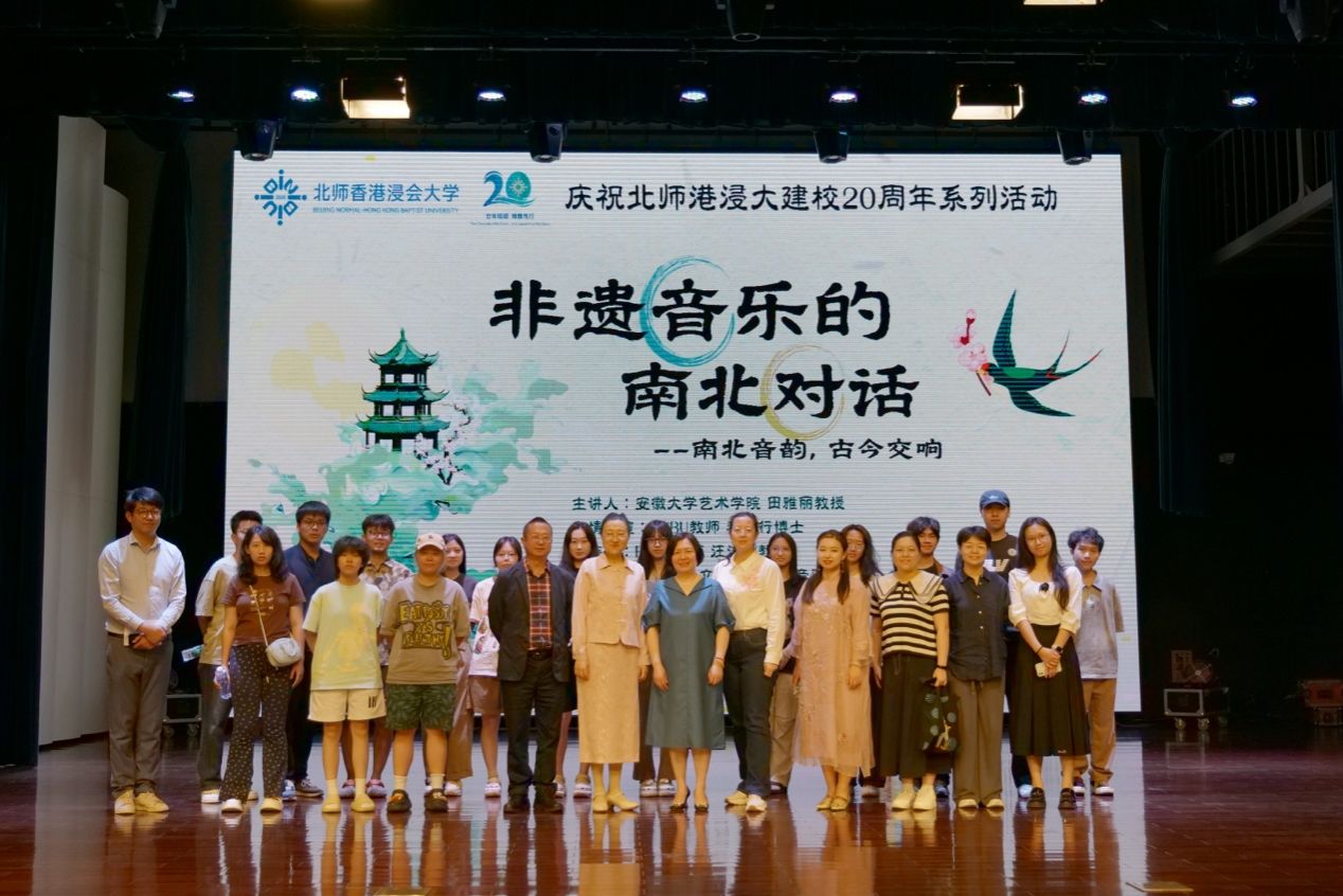 At noon on April 17, 2025, the event “ A Dialogue Between Northern and Southern Intangible Musical Heritage”, part of the BNBU 20th Anniversary Celebration Series, was successfully held at the university’s Performance Theatre. The event was organized by the Music Department, School of Cultural and Creativity. Professor Tian Yali from the School of Arts at Anhui University was invited as the keynote speaker. With her engaging presentation style—interweaving singing and explanation—Professor Tian delivered a rich and distinctive exploration of China’s intangible musical heritage.