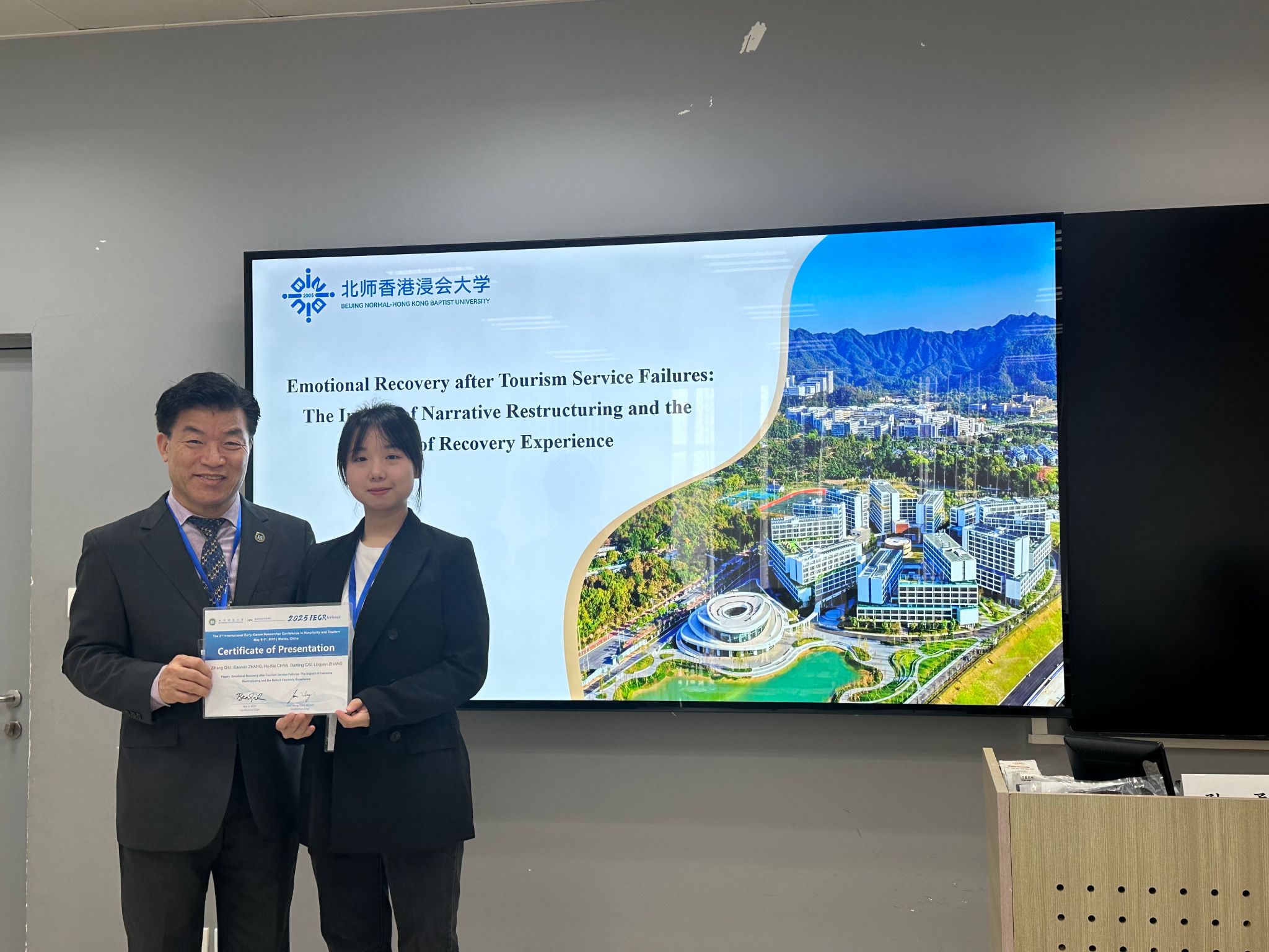 Zihang Qiu's paper “Emotional Recovery after Tourism Service Failures: The Impact of Narrative Restructuring and the Role of Recovery Experience” investigates effective emotional rehabilitation for tourists experiencing service failures. The study demonstrates how various narrative strategies facilitate recovery, while identifying 'recovery experience' as the critical mediator between behavioral intentions and emotional responses. This research provides tourism enterprises with tiered response strategies tailored to different service failure scenarios. Recognized by conference experts for its innovativeness, the study showcases BNBU students' strong academic research capabilities and global perspective.