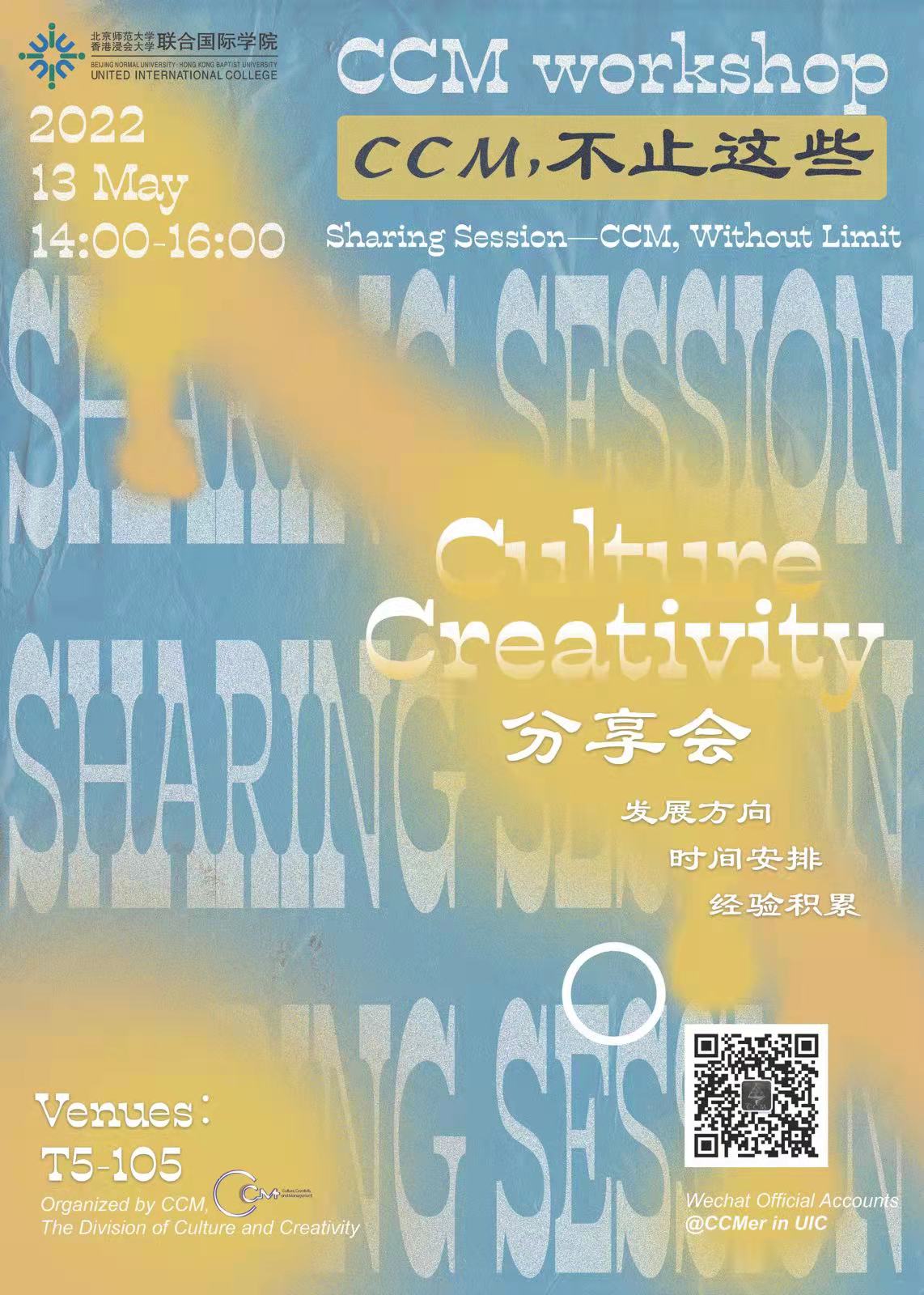 On behalf of Division of Culture and Creativity, we sincerely invite you to participate in the 2022 CCM Yr. 4 Students Sharing Workshop “CCM, without Limit”.