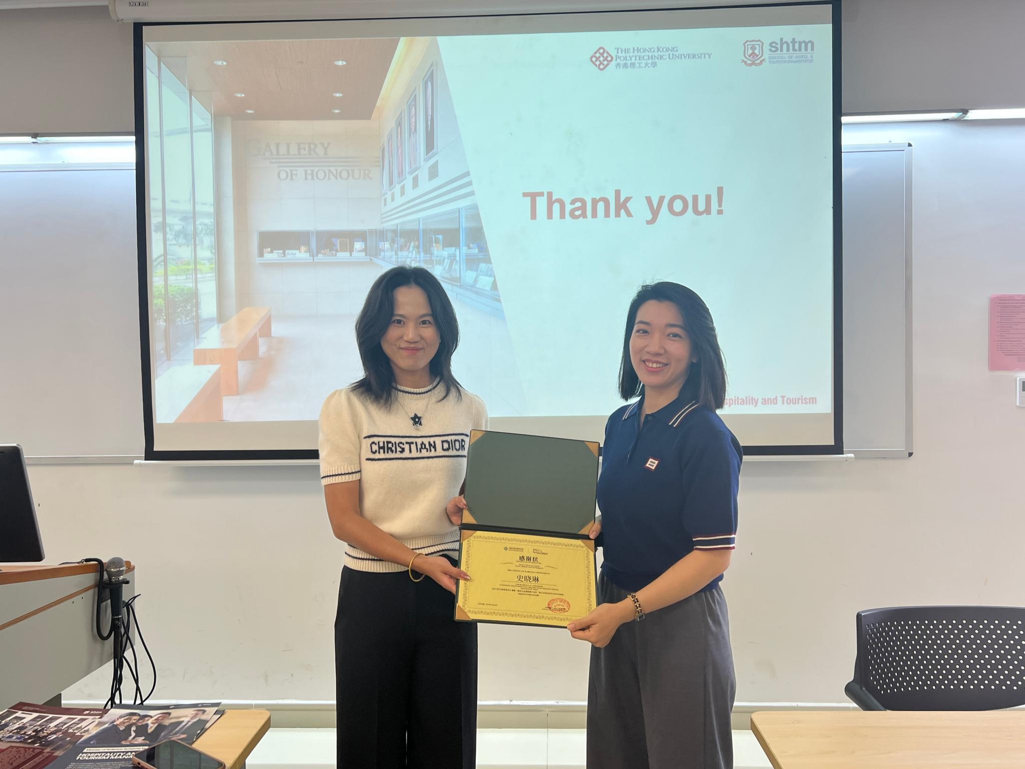 On the morning of November 18, 2024, the Tourism, Hospitality and Event Management Programme of the Department of Cultural Creativity and Design, School of Culture and Creativity, had the honor of hosting Dr. Crystal Shi, an Assistant Professor from the School of Hotel and Tourism Management at the Hong Kong Polytechnic University. Dr. Shi presented an academic seminar titled "Modeling Time in Hospitality Organizational Research: Understanding Dynamic Processes Over Time" to an engaged audience of faculty and students in room CC302.