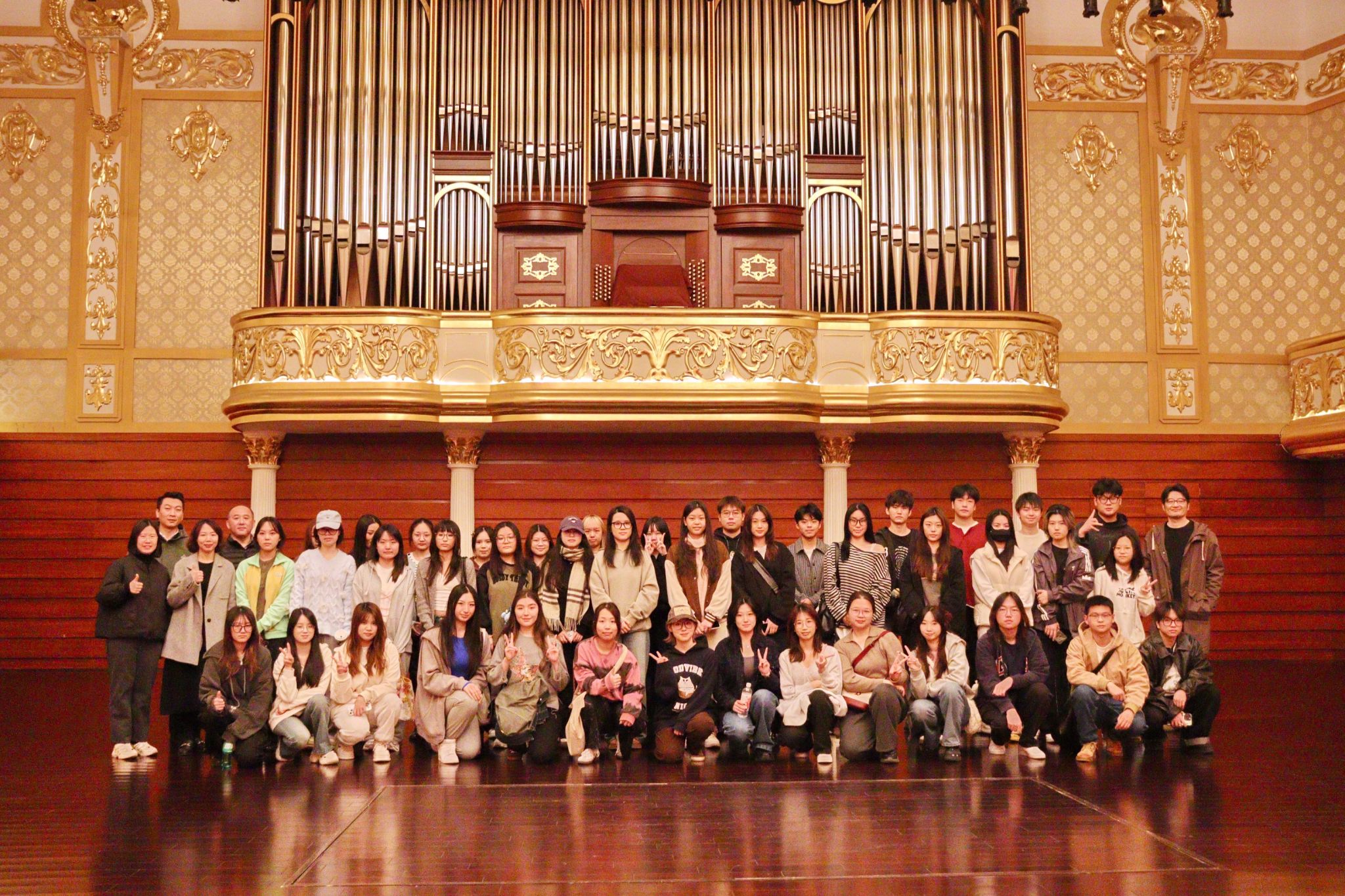 In addition, students also visited the Mozart concert hall, which was supported by the Austrian Mozart Foundation and was named after Mozart. In terms of interior decoration, it draws on the golden hall in Vienna, with the dome inlaid with gold foil relief decoration and a pipe organ in the middle, making the overall magnificent. And through unique acoustic design, the audience at each position hears the sound exactly the same speed. Students came on the stage and sat in the spectatory to have different experiences as the performers and audience.