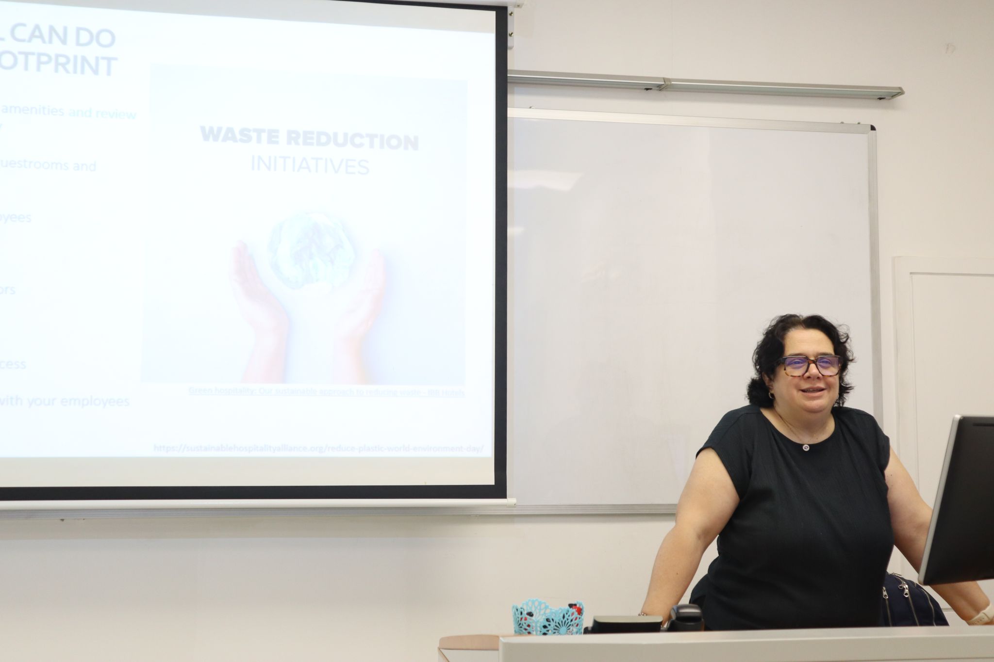 During the lecture, Prof. Menconi focused on the hospitality and tourism industries' sustainable development. She stressed the significance of green chemistry in reducing the hotel industry's harmful substances and environmental impact, thus supporting sustainable development. Regarding corporate social responsibility, she said enterprises should meet social and environmental obligations while making profits, which benefits brand image and competitiveness.
