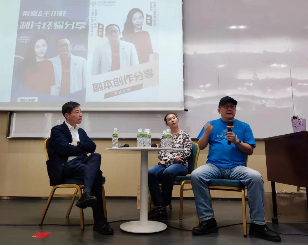 在问答互动环节,同学们积极提问,两位老师也针对学生的提问一一作答,并与他们分享作为编剧和制片人的心得体会及行业经验。