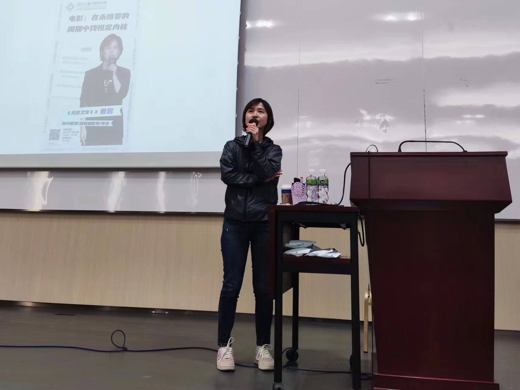 讲座开始前,由文化与创意学院执行院长蒋崴博士致辞,对鲁岩女士的到来表示欢迎和感谢,并送上了学校的文创纪念品。