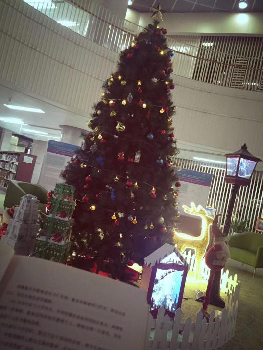 可能是我的错觉,学校图书馆里隐隐地弥着些许淡淡的植物香气,因此每次进来学习时都能很快静下心来,哪怕岭南的天气总是热得不像话。而到了冬天则是另一种感受,尤其是平安夜和圣诞节,老师们会在图书馆正中央的空地上摆上一棵高高的圣诞树,并在上面挂满缤纷闪烁的饰物,树顶上的金色星星在鹅黄色灯光的映照下晶莹地亮着,煞是好看。而学生们则会围坐在圣诞树的边上,时不时地搓搓手,捧着书,裹着围巾全神贯注地阅读着。