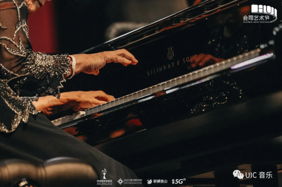 这位老艺术家在聚光灯下散发着迷人的金色光芒,吸引了全场的目光。她灵活的双手在琴键上飞舞着,展示着冰冻三尺非一日之寒的功力,令人钦佩。