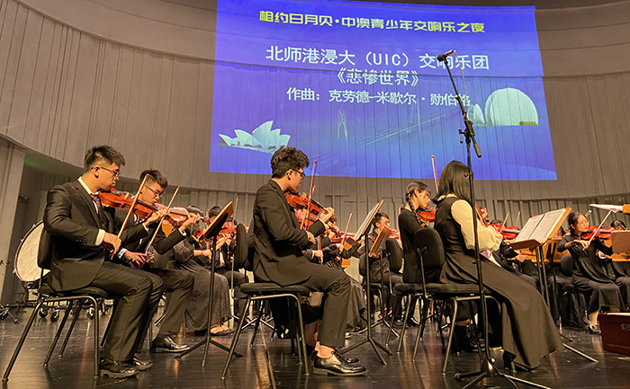 2019年12月21日晚,应澳大利亚新金山交响乐团(ANGO)邀请,北师港浸大(UIC)交响乐团参与了“相约日月贝·中澳青少年交响乐之夜”的音乐演出,与澳洲新金山交响乐团、珠海市第一中学交响乐团一同为市民带来了一场融合中西文化的音乐盛宴。