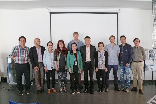 关利平教授(右四)、郑心民先生(右五)、文化创意与管理专业课程主任吴佩仪博士(右六)与各位老师、嘉宾合影