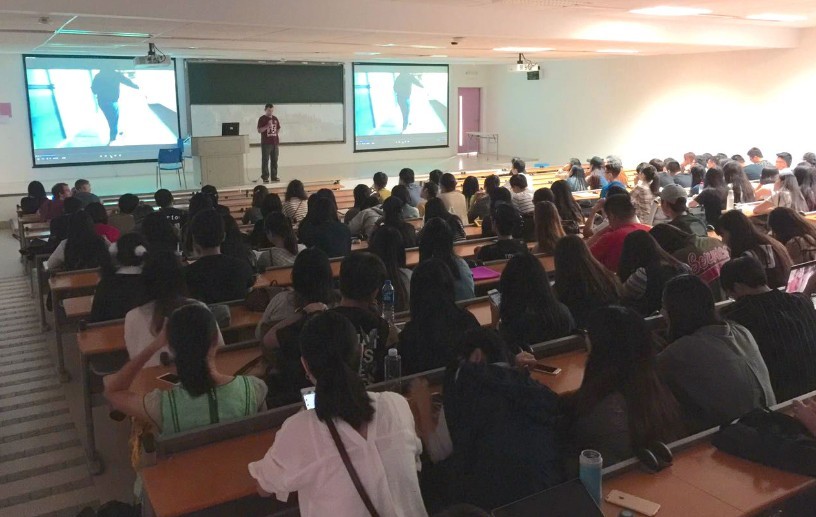 电影电视专业William Andrew助理教授首先播放了同学们在以往作品中涉及危险动作或安全隐患的镜头,并与同学们分析拍摄过程需注意的安全事项。