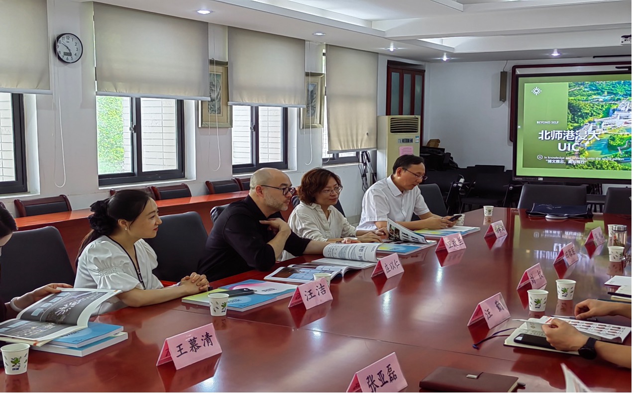 2024年6月25日下午,UIC文化与创意学院院长庄以仁教授一行借在合肥招生机会,抽出时间专程来到安徽大学和安徽艺术学院开展校际交流活动,并分别与拜访单位进行了座谈交流。两所院校对庄以仁教授一行的到访表示了热烈欢迎,座谈双方在相互介绍校情院情之后,深入交流了各自课程设置与教学情况,并就加强今后的交流与合作达成了初步意向。安徽大学国际交流处胡学文处长、艺术学院刘权院长、田雅丽副院长、党委书记汪勤及有关系科负责人;安徽艺术学院国际交流处陈明处长,对外合作部丁凡主任, 教学管理部阚侃主任等出席会谈。UIC文化与创意学院庄以仁教授、影视与新媒体系系主任卫改兰博士、音乐系汪洁副主任参加了交流座谈。