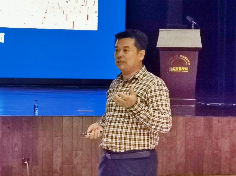 2023年10月10日下午,在节庆活动策划与管理(Event Planning and Management)课程中,授课老师、副教授吴佩仪博士(Dr. Purrie NG)与助理导师谢意女士(Ms. Doris XIE)带领旅游、酒店和会展管理 (THEM) 专业的学生们来到UIC大学会堂,聆听演讲嘉宾北师港浸大(UIC)物业管理处高级技术主管吴唐敏老师(Mr.Tom Wu)关于活动策划和舞美技术的精彩讲座。