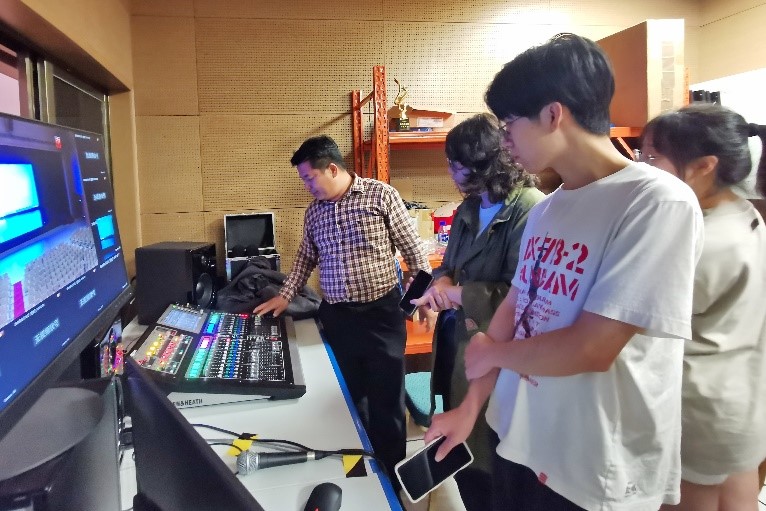 讲座后,吴老师带领着学生走进控制室,上手操作灯光控制台以及调音台。在实际操作中,学生们更加深入了解到视听设备如何将表演效果和观众体验提升到新高度。