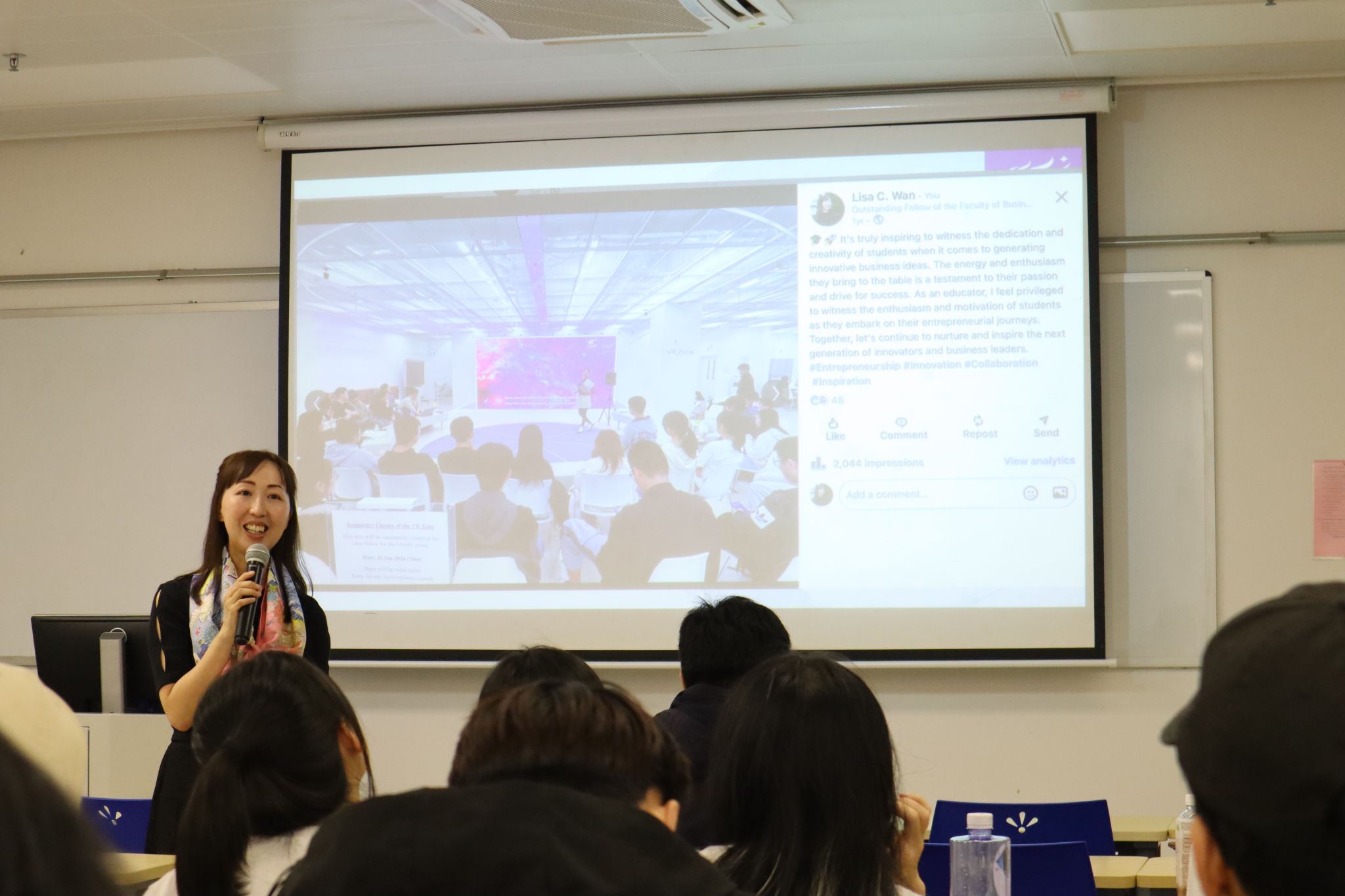 针对行业痛点,尹教授提出了多维度解决方案。她强调增进游客与当地居民之间的心理亲近感来促进游客的环保行为。同时,旅游行业应强化行为引导,宣传不良行为的后果。在酒店和旅游企业方面,引入酒店业可持续发展指数。此外,尹教授还分享了获得300万港元资金支持的可持续乡村旅游政府项目,并强调学术研究需与产业实践结合。她还呼吁学生将个人兴趣融入学术探索和职业规划,为未来行业发展贡献力量。