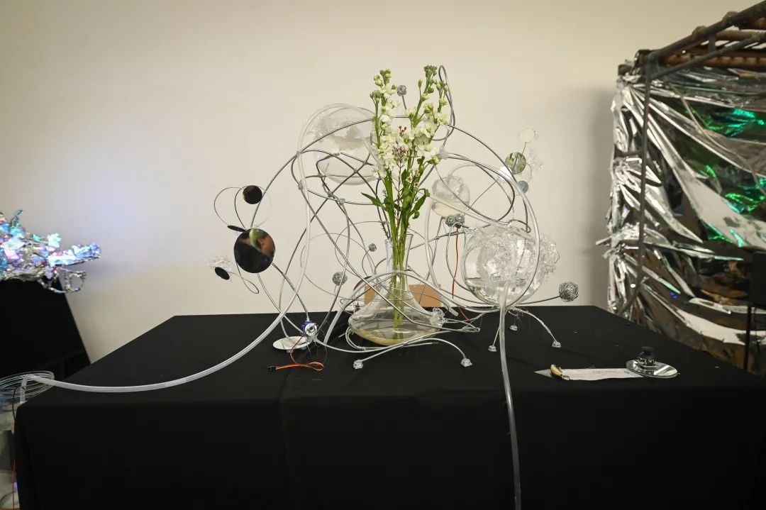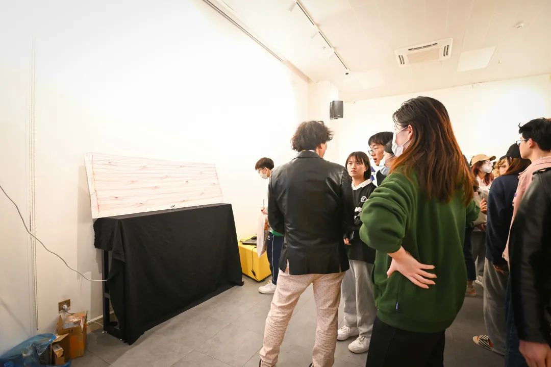 在现场,每组展品的制作者们向参观者介绍交互装置的设计理念与交互方式,让参观者能更好地理解到每组展品背后的故事。