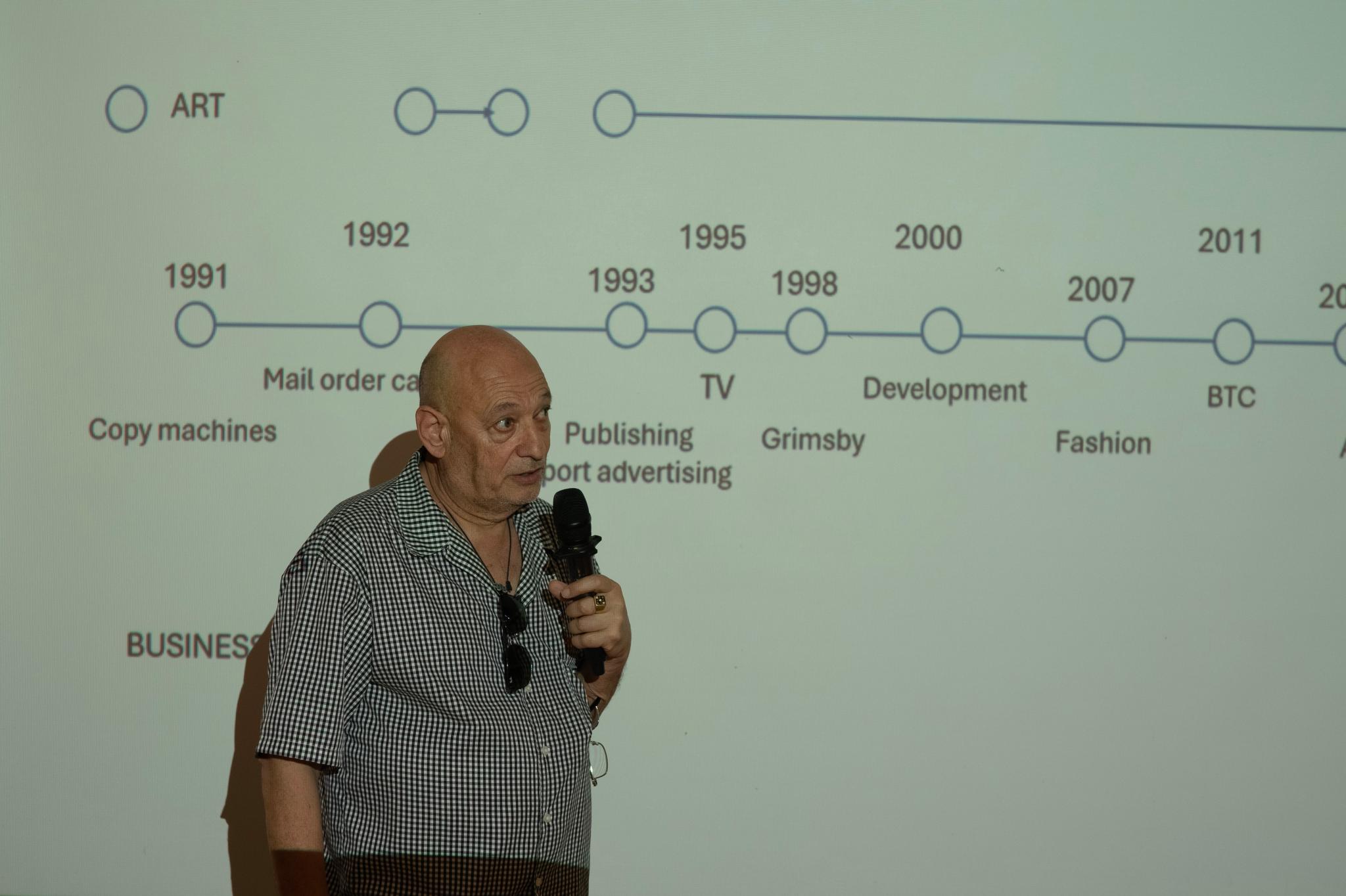2024年10月23日下午,英国艺术家VitaliV(为他利)先生及其团队,应工商管理学院管理系与文化与创意学院文化创意与设计系的诚挚邀请,莅临学院并开展了主题为“英国艺术家为他利V艺术创造与商业创新”的精彩讲座。此次活动由管理系系主任黄庆丰副教授和文化创意与设计系系主任原源副教授共同主持。