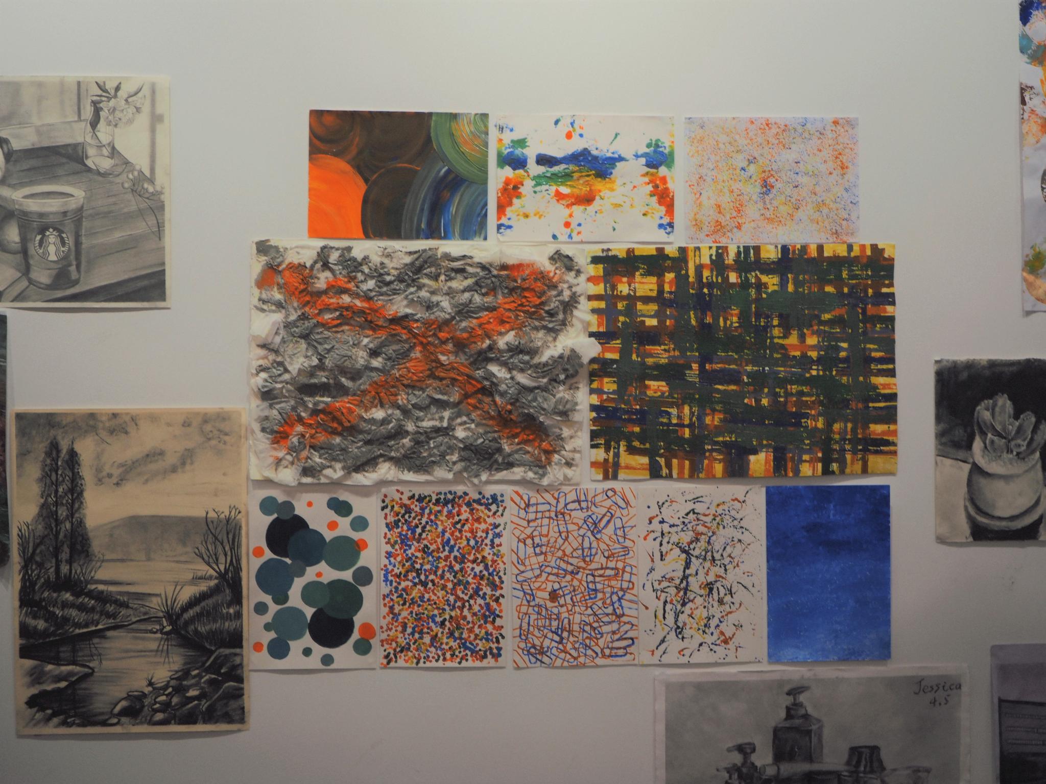 Under the guidance of Mr. Andy and Mr. Zhiwan, the students selected their three most satisfied works to display. Most of the students' works under Andy's guidance are colorful and abstract. Mr. Zhiwan's student works are sketches, mainly black and white figurative paintings. Two different styles of paintings are displayed together, cleverly presenting an aesthetic feeling of color collision and fusion.