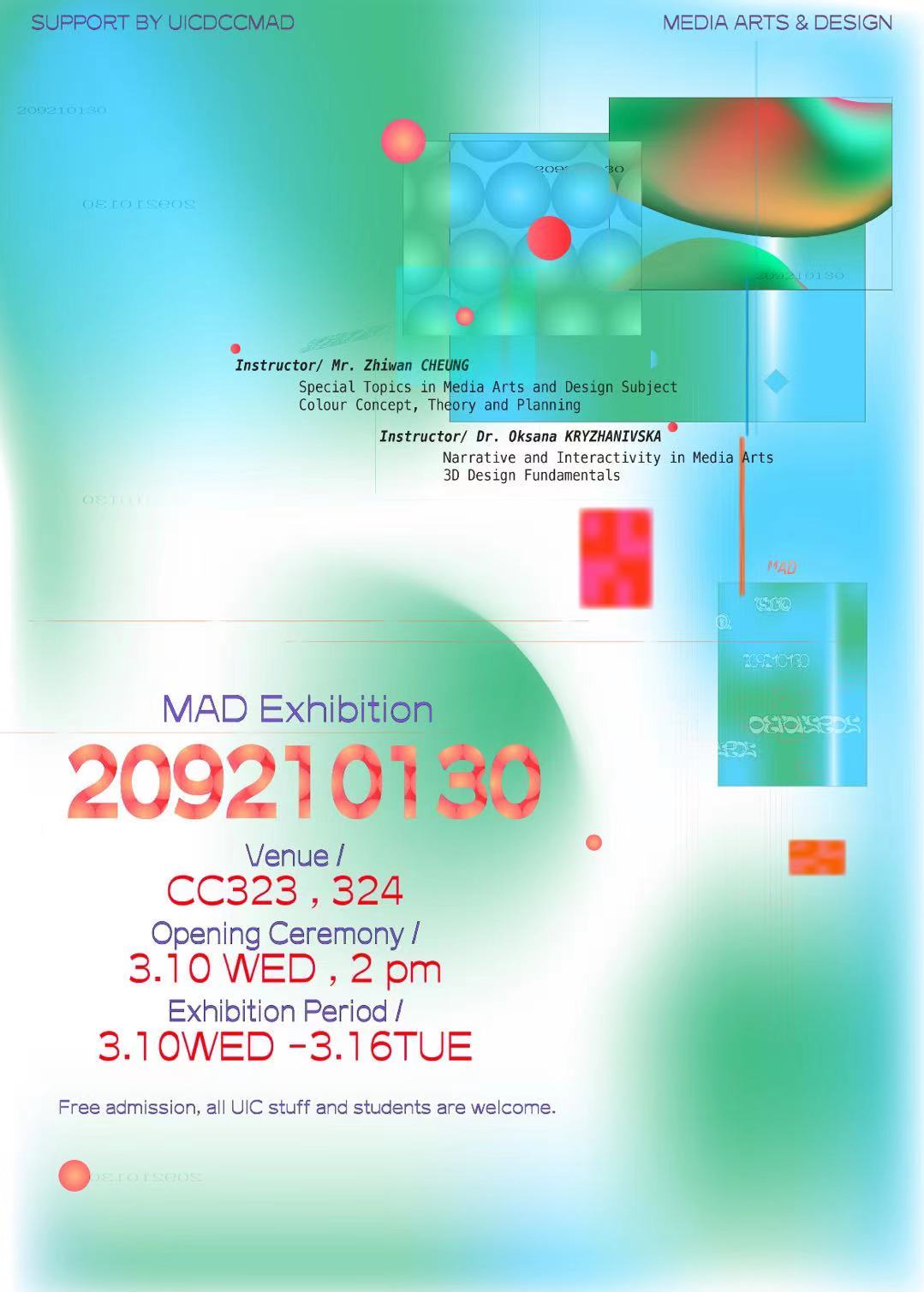 You are cordially invited to 209210130, a multimedia exhibition containing works from MAD students organized by Dr. Oksana Kryzhanivska and Mr. Zhiwan Cheung. Encompassing paintings, videos, 3D printed sculptures, and interactive art, these students will present the multitude of approaches in capturing the essence and thingness of a thing in an increasingly digitized world. We hope you can join us in this journey of exploration.