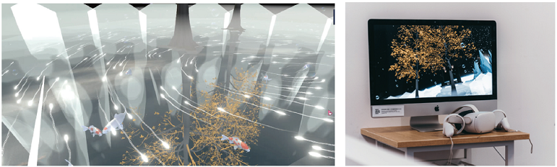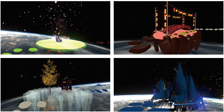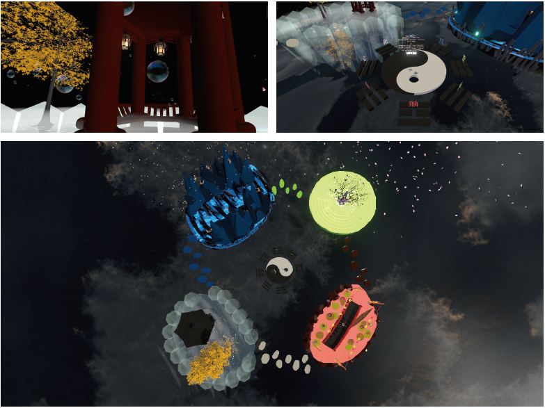 Feng Shui Garden is a fantastic virtual world built on the basis of Yin Yang and Ba Gua (Eight Hexagrams). The viewer can explore the garden through the VR device, experiencing the positive feedback between Feng Shui culture and individuals by interacting with different seasonal scenes and thus feeling the charm of Chinese Feng Shui culture.