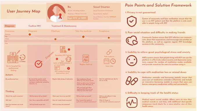 In China, people always talk about HIV with prejudice and fear. As a result, life for people living with HIV in China is diffcult and depressing. At the same time, I discovered that there are many spontaneous support groups for people living with HIV in China, and their spirit broke my prejudice and moved me. I hope to create a more accessible and friendly support community for them, based on an APP, to assist them in obtaining timely access to effective treatment, communiting with each other, and learning more about HIV.