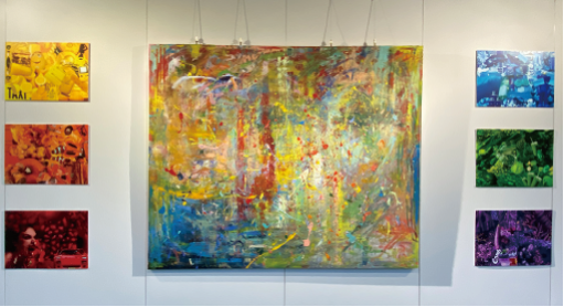 Self-question and Answer is Dou Yuxian's attempt to explore the visualization of emotion. When asking mine own questions, I use color as the medium to create, which is divided into three layers. The first layer is the intuitive color output, which is more abstract. The second layer is the collage into the memory things seen in the growth process. The third layer is the painting with emotional guidance. Viewers may resonate when they see the work.