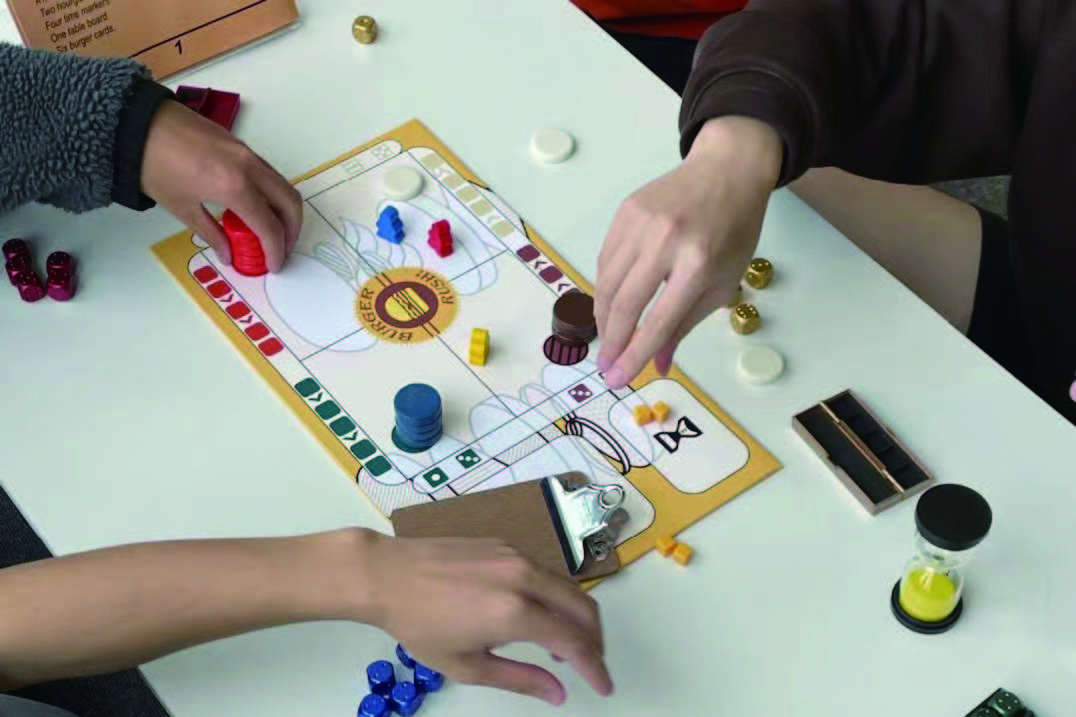 Burger RUSH! is a timed cooperative dice board game for two to four players. Players will play as burger store employees and cooperateto finish customers' orders. If all orders are completed correctly withinthe time limit, the players win the game immediately!