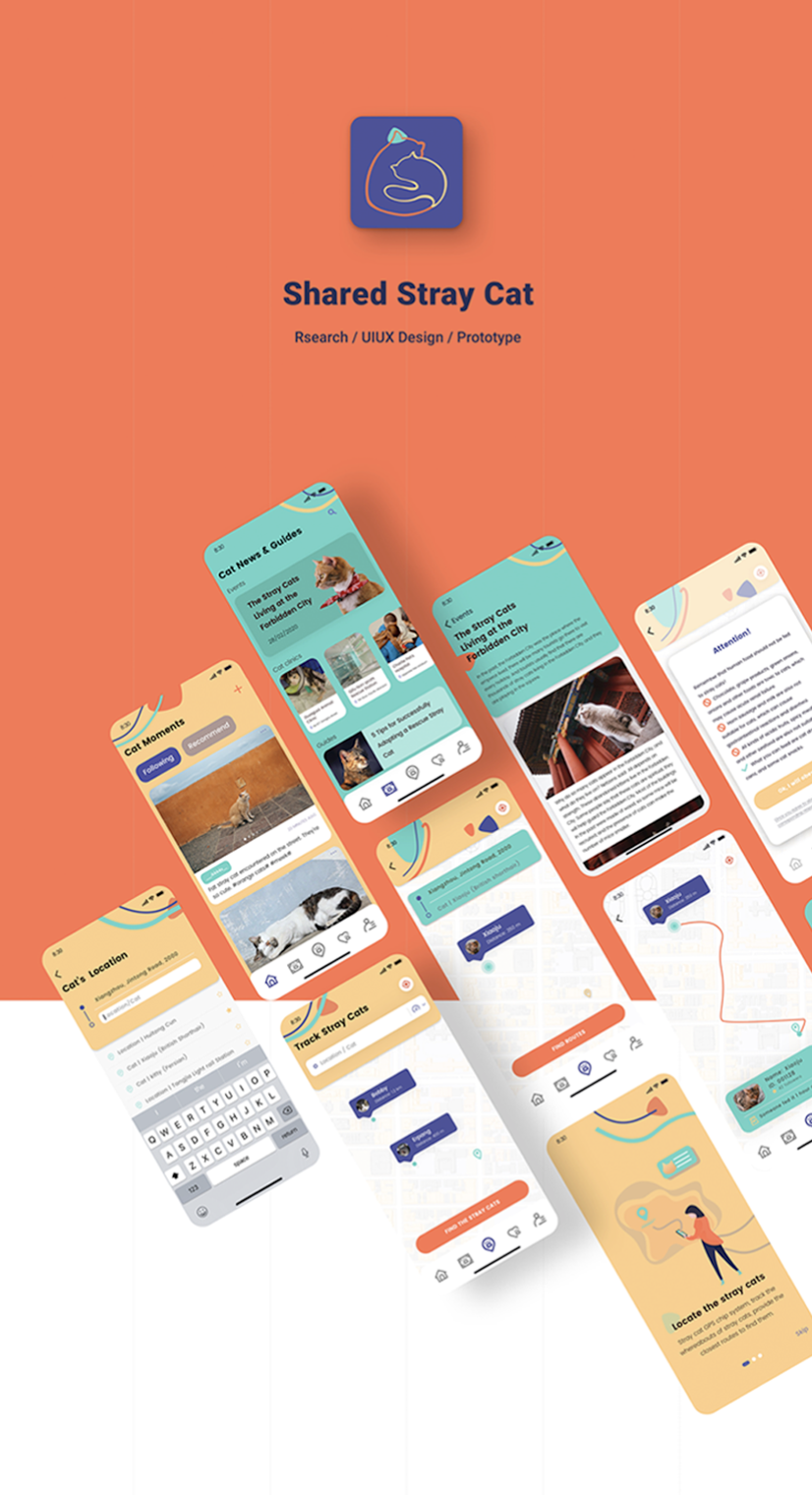 In my final year project, I design a prototype for a stray cat app to address the issue of protection and rescue of urban stray animals, which is an online management platform that includes information sharing and positioning tracking of stray cats. The final outcomes of this project include a user flow diagram, wireframe, high-fidelity UI design, and prototype. The social impact of this project is to protect stray cats and to reduce the urban environmental threats resulting from the growing number of stray cats, as well as to provide cat lovers with the opportunity to help cats.