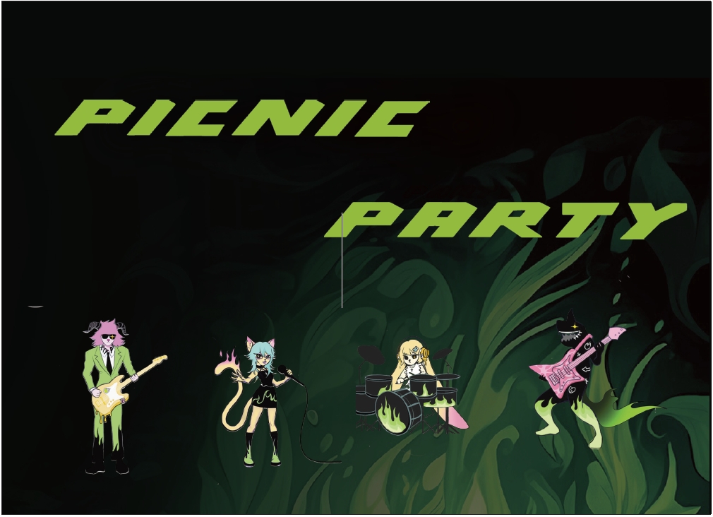 The core philosophy of the Picnic Party band is to break free from societal constraints and explore the realms of freedom and authenticity within oneself. The IP design primarily consists of five characters who form a band comprising women from different ages and professions. The picnic symbolizes the attitude of enjoying life during leisure time. This expresses the core idea of encouraging people to embrace the enjoyment of life. The color scheme, characterized by extensive use of bright green, aims to showcase the allure and beauty of nature.