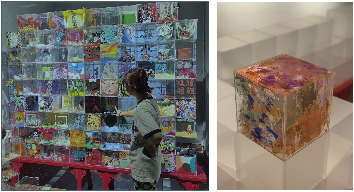This is an attempt of a public project.In the Art Space Xuyuhuanbian, in March and Apri, the whole project comprises three sections: public art works, Paintings exhibition and experimental video exhibition.I invited every participants who came to the art space to join in. All I have for them are empty boxes and a few different materials, but each person creates a box with a distinct personality and style.At the end of the projdect, I built a wall of all these boxes. This strange brick wall is not only a collection of ideas, but also a microcosm of the human ecology of this small community. When we ware shaping it, it's also showed a reflection of this place, which reveals the interplay and interaction among the exhibition, art space and the audience.As the initiator of the whole project, I hope that we can try to communicate in different ways, and also hope that through this interesting way, we can narrow the distance between art, art space, community and the public, so that art can be quietly integrated into everyone's life.