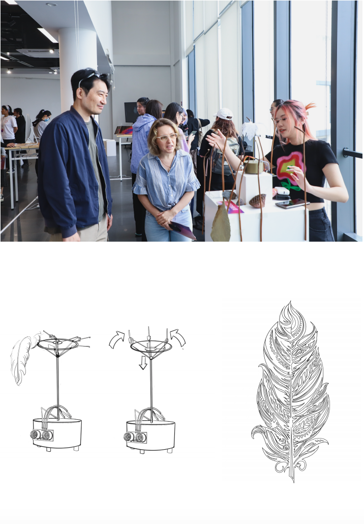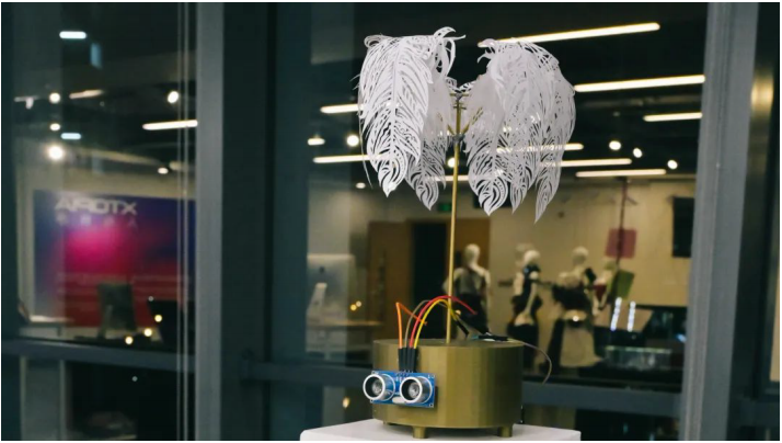 An Arduino-based bionic mechanical interactive installation. When you gaze at a flflower, it exists in your consciousness, and you appreciate its blooming, fading, and every movement of its petals. However, the flflower itself does not intentionally bloom or wither because of human existence, which is the essence of life's simplicity. If this flflower has any meaning in your sight, then what you see is a new form of life - a flower that combines machinery, code, and paper sculpture art, blooming in your heart.
