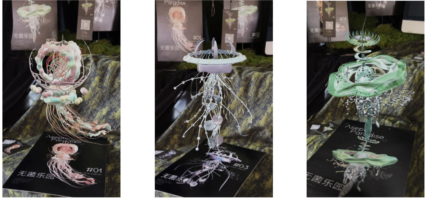 Aseptic Paradise is a work combining modeling and AR, which presents the current situation of over-protection of children in the current society, and takes several organisms as prototypes to convey the thinking that sterile environment will hinder children's free growth.