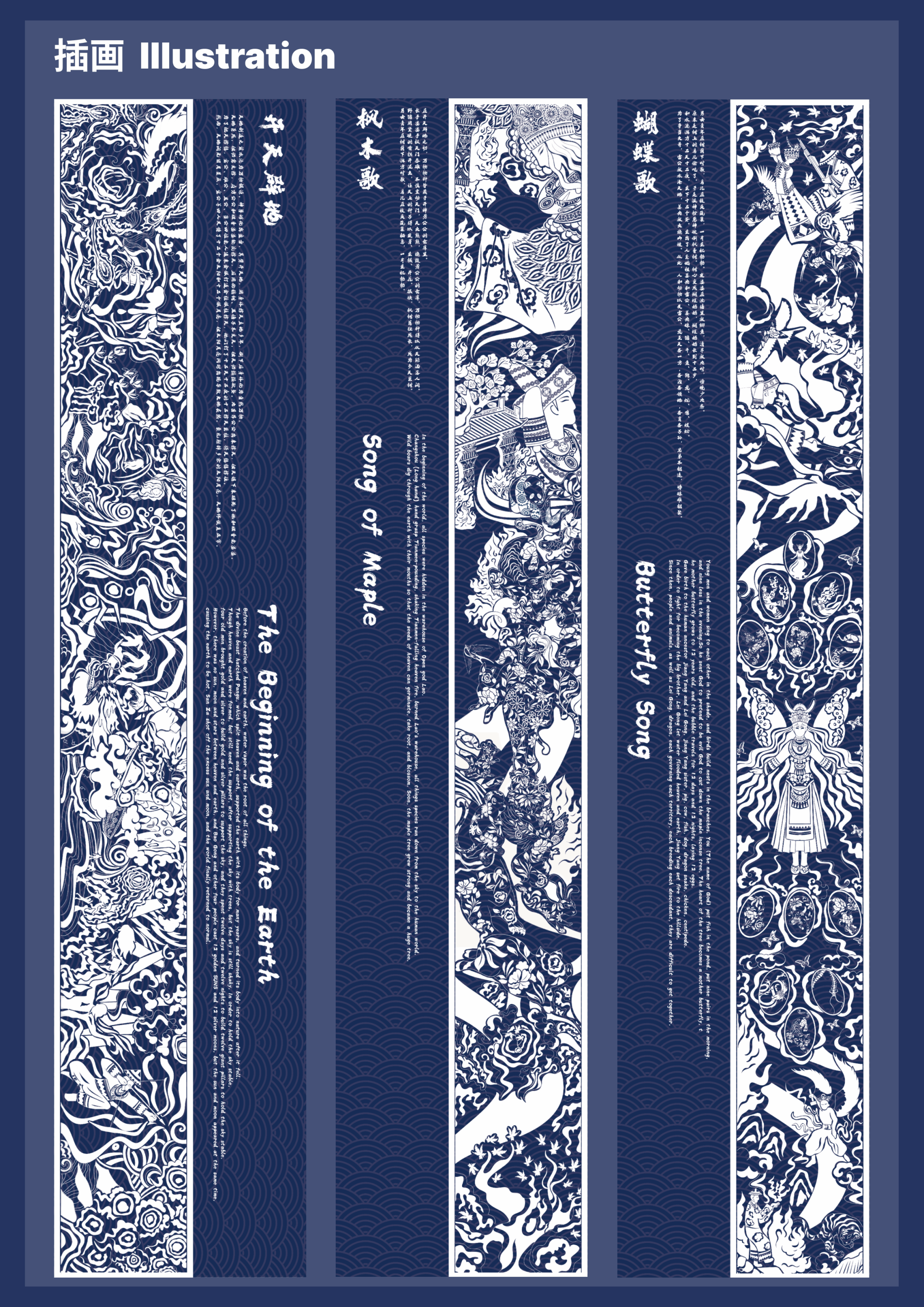 The illustration series of Ode to Miao is based on the epic of Miao nationality, and reproduces the fantasy narrative of Create the earth and creating sentient beings in Miao mythology from the perspective of the singer. The work aims to change the general impression of the Miao people and show their praise for nature and life.