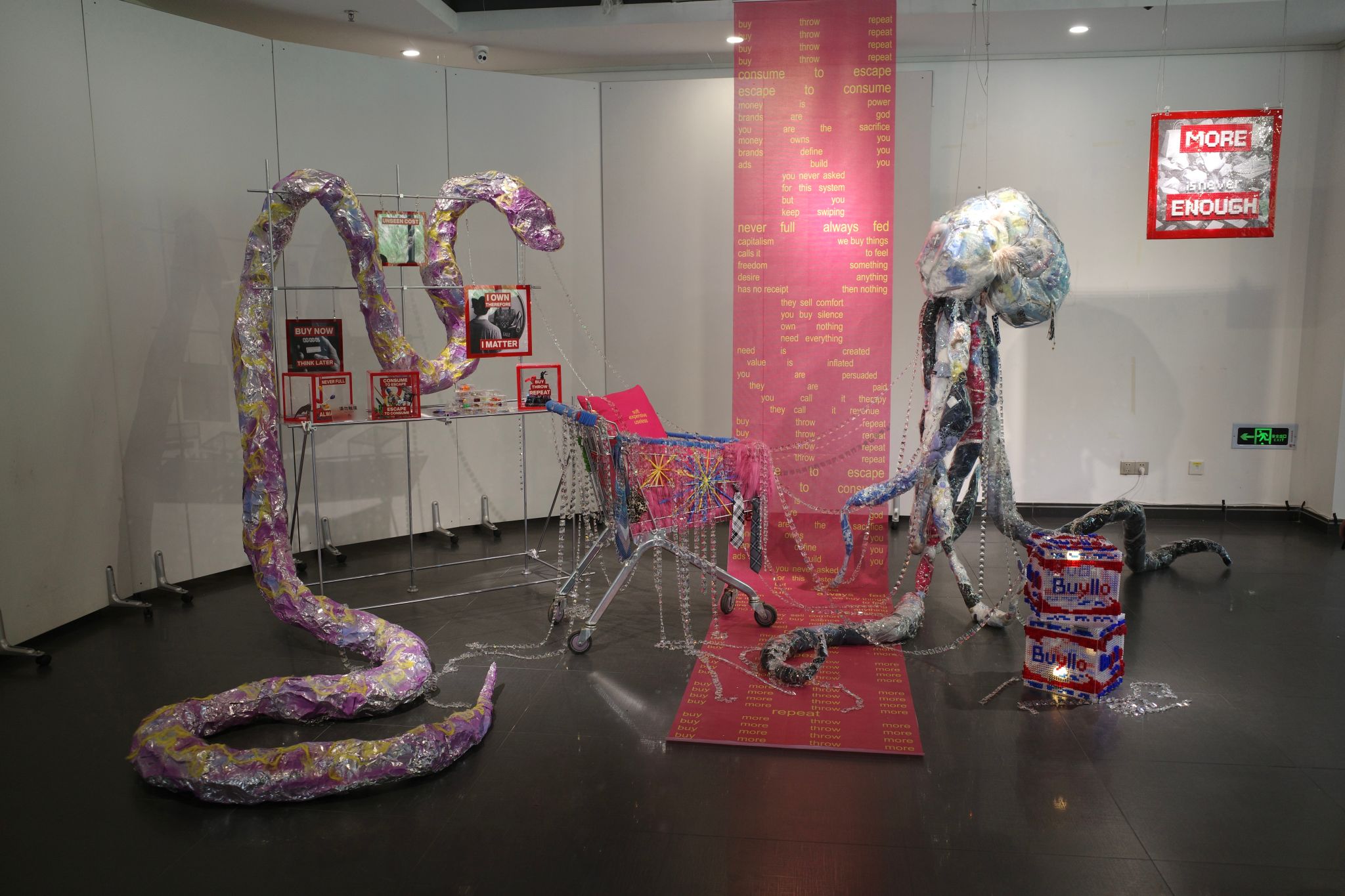 This project centers on contemporary consumerism, adopting the logic of storefront display to explore how commodity fetishism and shopping desire manipulate and exploit individuals. It combines advertising imagery, window dressing, and anima symbolism to critique the worship of objects, the hidden exploitation of labor, and the construction of personal desire in a consumer-driven society.