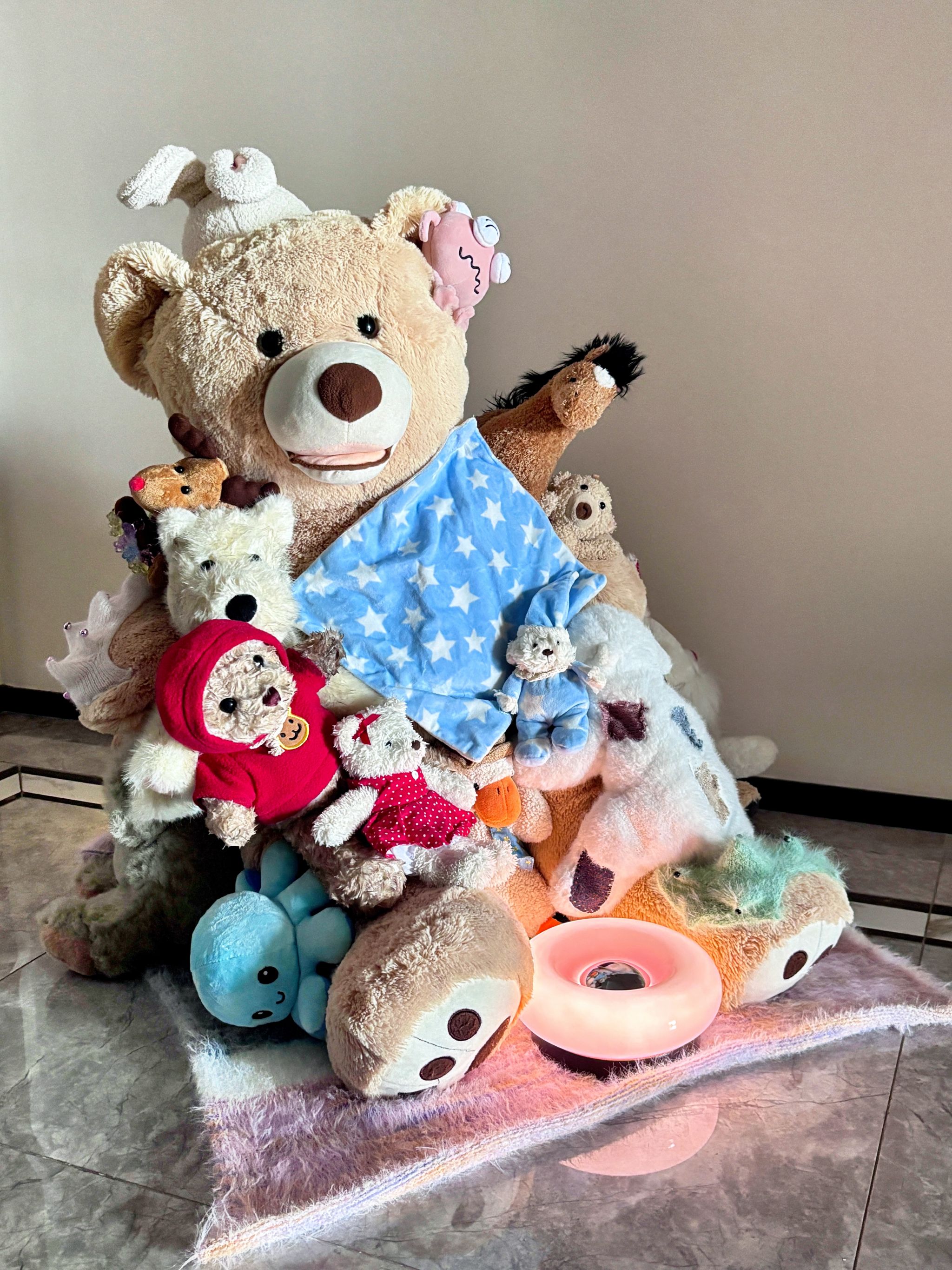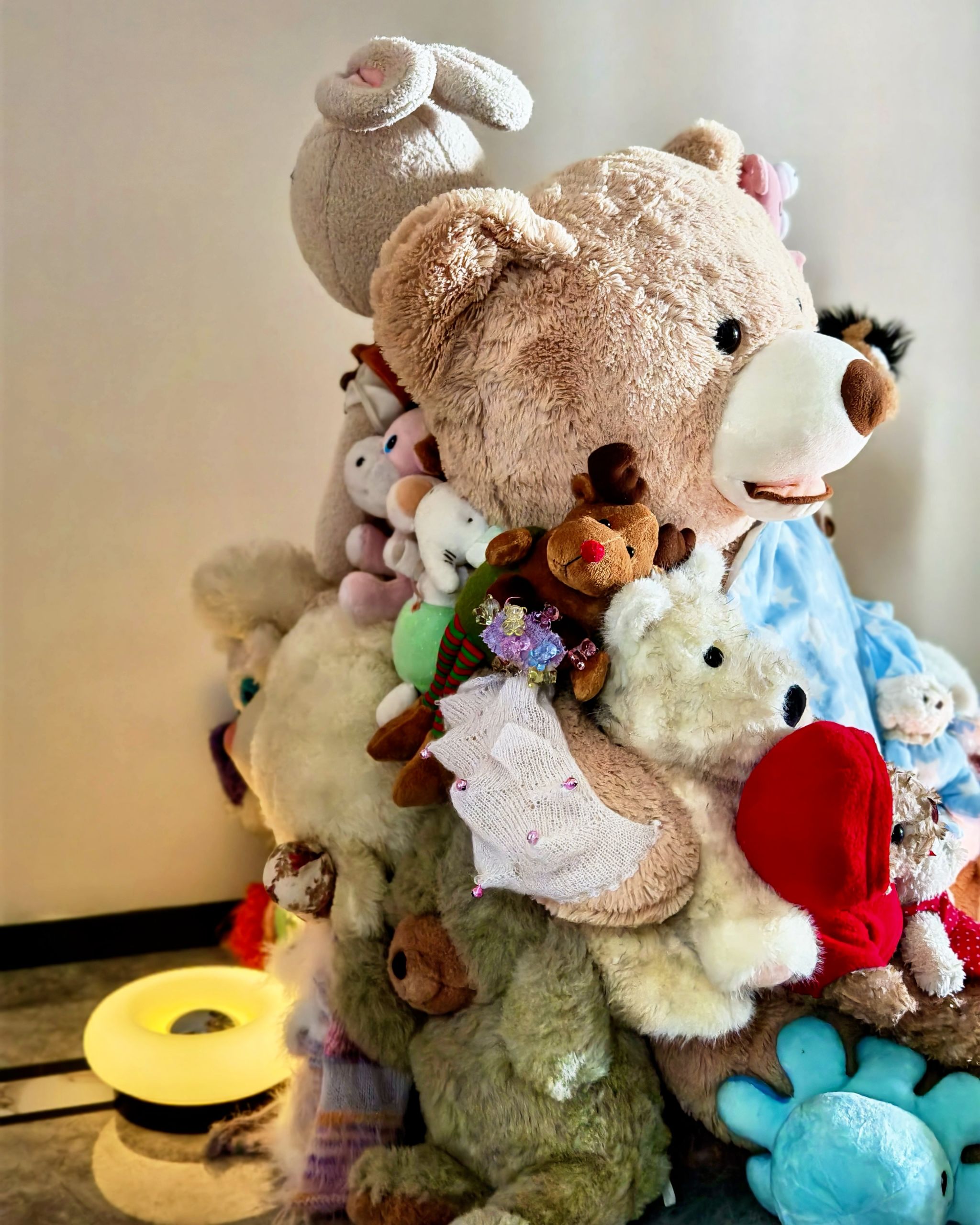 Inspiration comes from my Abbebe - the teddy bear l played with in my childhood. Everyone has their own Abbebe, and even when they grow up, Abbebe becomes an emotional carrier of childhood memories for people. The childhood memories are built through the stacking dolls, and the soft outlines have solidified the Abbebe deep in people's memories, They rely on and support each other, forming a rebirth once again.