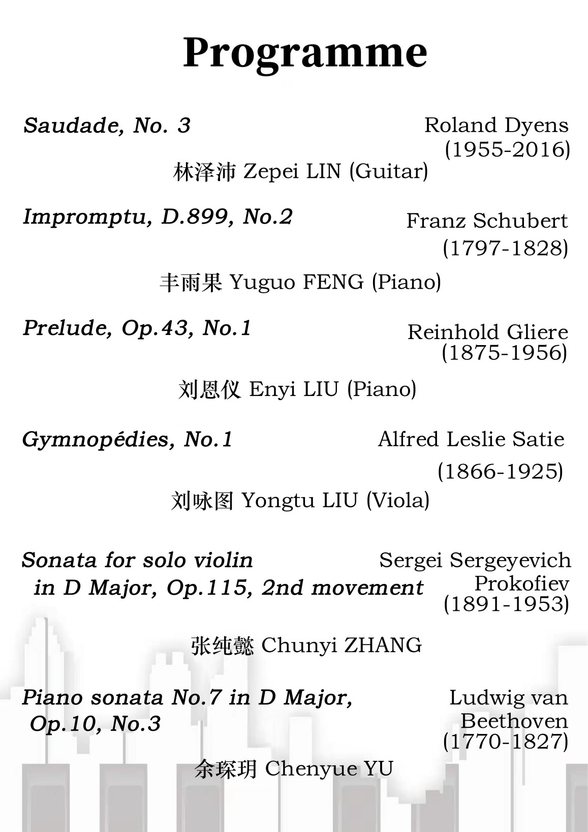 最后余琛玥同学带来的是贝多芬《D大调奏鸣曲》。路德维希·凡·贝多芬是德国著名的作曲家、钢琴家,被称为“乐圣”,他创作的《三十二首钢琴奏鸣曲》广为流传,几乎成为每位钢琴演奏者都要演奏的曲目。余同学在演奏完这首作品后,对于抒情同时又不失波澜壮阔的乐曲情感处理也有了更加深刻的理解。